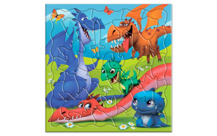 Милые дракончики веселятся на полянке! Правильно сложи все фрагменты - и присоединяйся к их забавной игре! Элементы пазла - фигурки драконов и волшебные предметы. Собирай, играй и рассматривай! Пазл тренирует мелкую моторику, внимание, память и способствует развитию образного мышления. А благодаря рамке и фрагментам из плотного картона пазл удобно хранить и брать с собой.