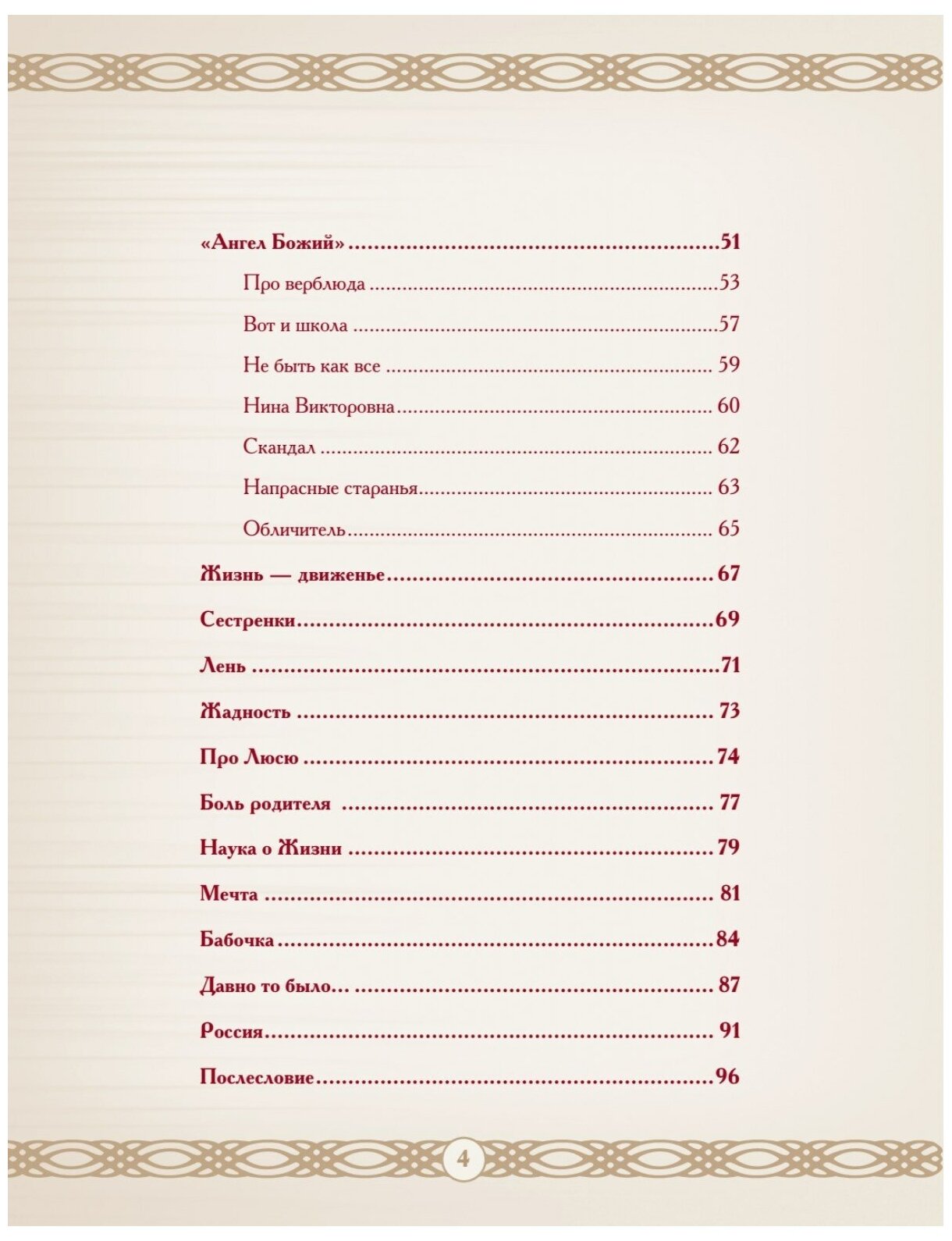 Книга представляет собой сборник рассказов, написанных в стихотворной форме. Каждый рассказ - это сюжет из жизни людей, запомнившийся автору, оставивший в душе определенный след. Это поучительные картинки жизни, имеющие свою форму, свою окраску, свое настроение, соответствующее содержанию. Важно, что каждый рассказ несет воспитательную нагрузку: нравственно-этическую, духовную, культурную, житейскую. Мораль всех рассказов-стихов зиждется на ценностях, которые для человечества должны быть маяками, направляющими дальнейшее развитие.