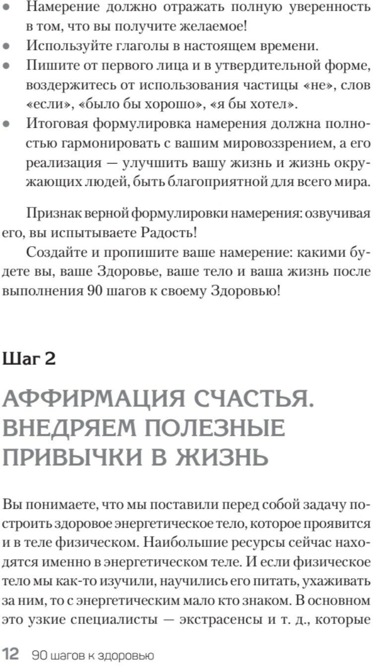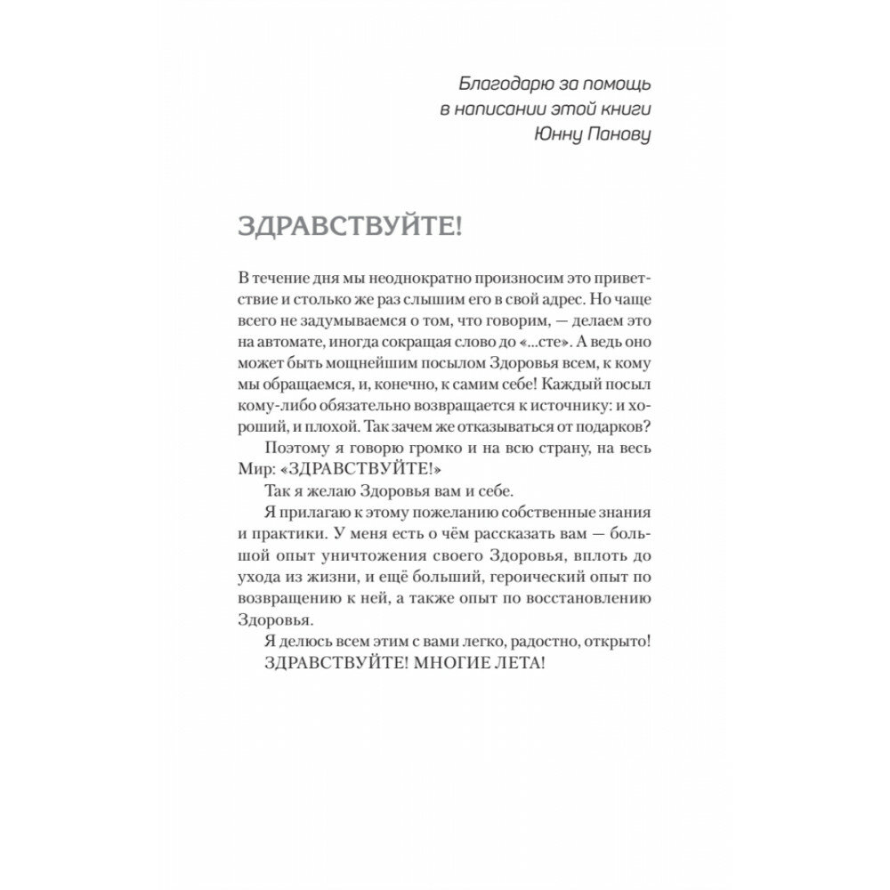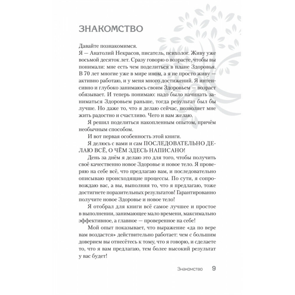 В книге делается упор на энергоинформационные упражнения. Анатолий Некрасов отобрал все самое лучшее и простое в выполнении, занимающее мало времени, максимально эффективное и, главное, проверенное на себе! Эта книга написана так, что читатель с каждым шагом раздвигает границы своего сознания, выстраивает современное Мировоззрение Здоровья, увеличивает масштабность мышления и жизни. По ходу текста глубина упражнений постоянно возрастает, и через 90 шагов читатель будет обладать самым современным мировоззрением в области Здоровья, практичными и, в то же время простыми методами работы с телом.