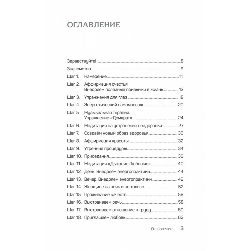 Здравствуйте, книга Мастера Анатолия Некрасова волшебная. В ней собран кладезь практической мудрости. Читается легко, все практики выполняются с желанием. А главное, что состояние меняется в сторону радости, любви и принятия себя. Благодарю за возможность улучшить свое здоровье. Желаю каждому прожить эти 90 шагов и быть счастливыми.