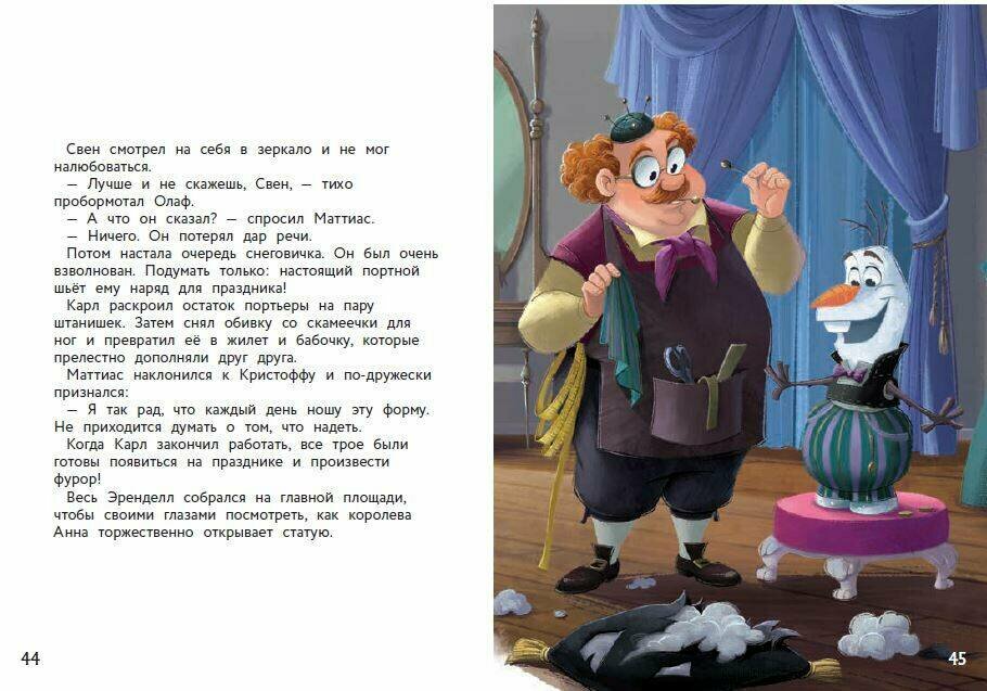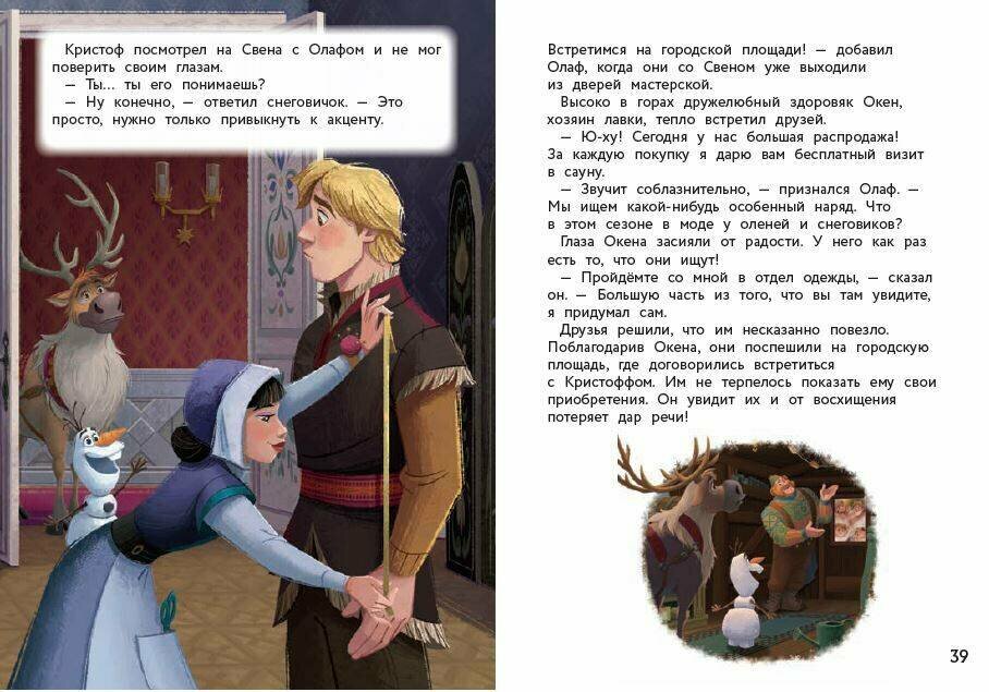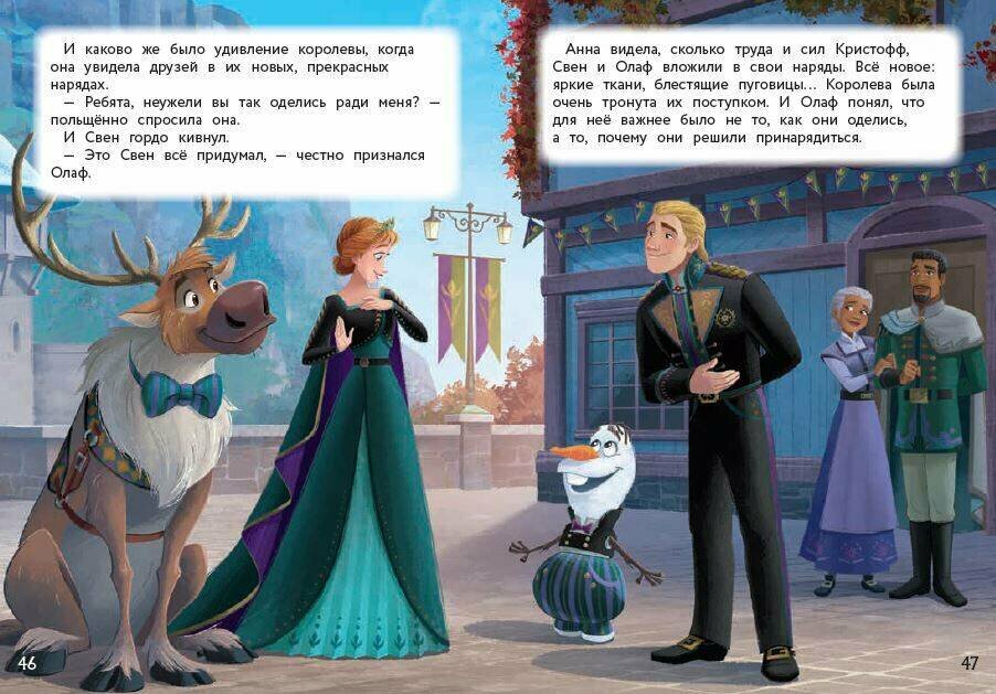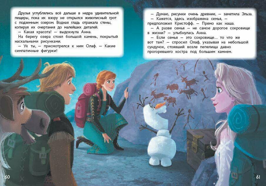 Бумага приятная, обложка твердая, книга интересная, сама книга маленького формата, удобно брать с собой в дорогу или куда-нибудь еще. Юным читателям и любителям Disney и \"Холодное сердце 2\" очень понравится. Страницы оформлены очень интересно, такста достаточно мало, и на каждой яркая иллюстрация, сразу становится веселее. Хорошо отвлечет от трудных дней