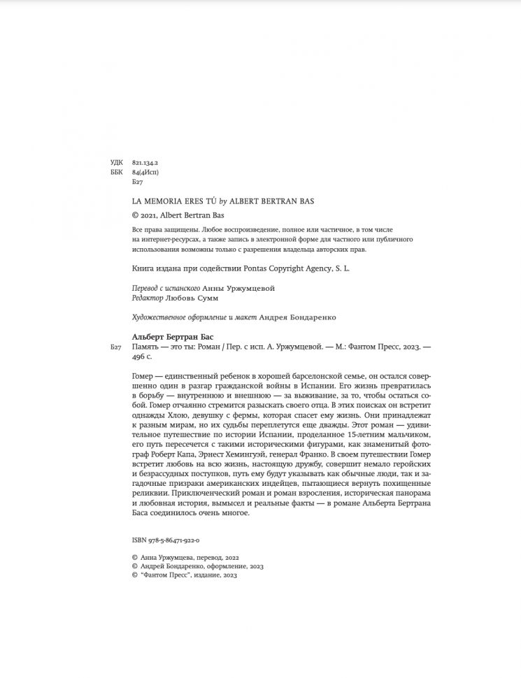 Книга: Память – это ты (Альберт Бертран Бас); Фантом Пресс, 2021