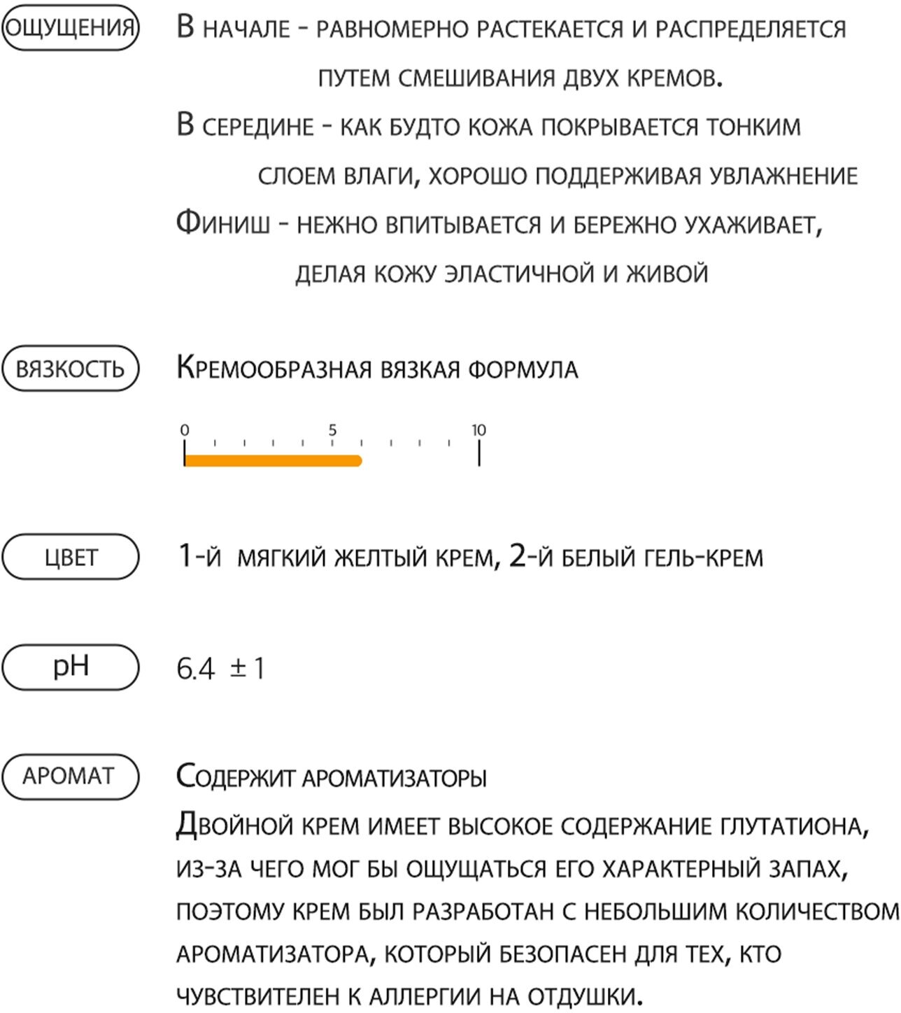 | Эффект от использования | восстанавливающий, выравнивающий микрорельефа, омолаживающий, разглаживающий, отбеливающий, питающий, сияние, смягчающий, тонизирующий, увлажняющий, осветляющий |