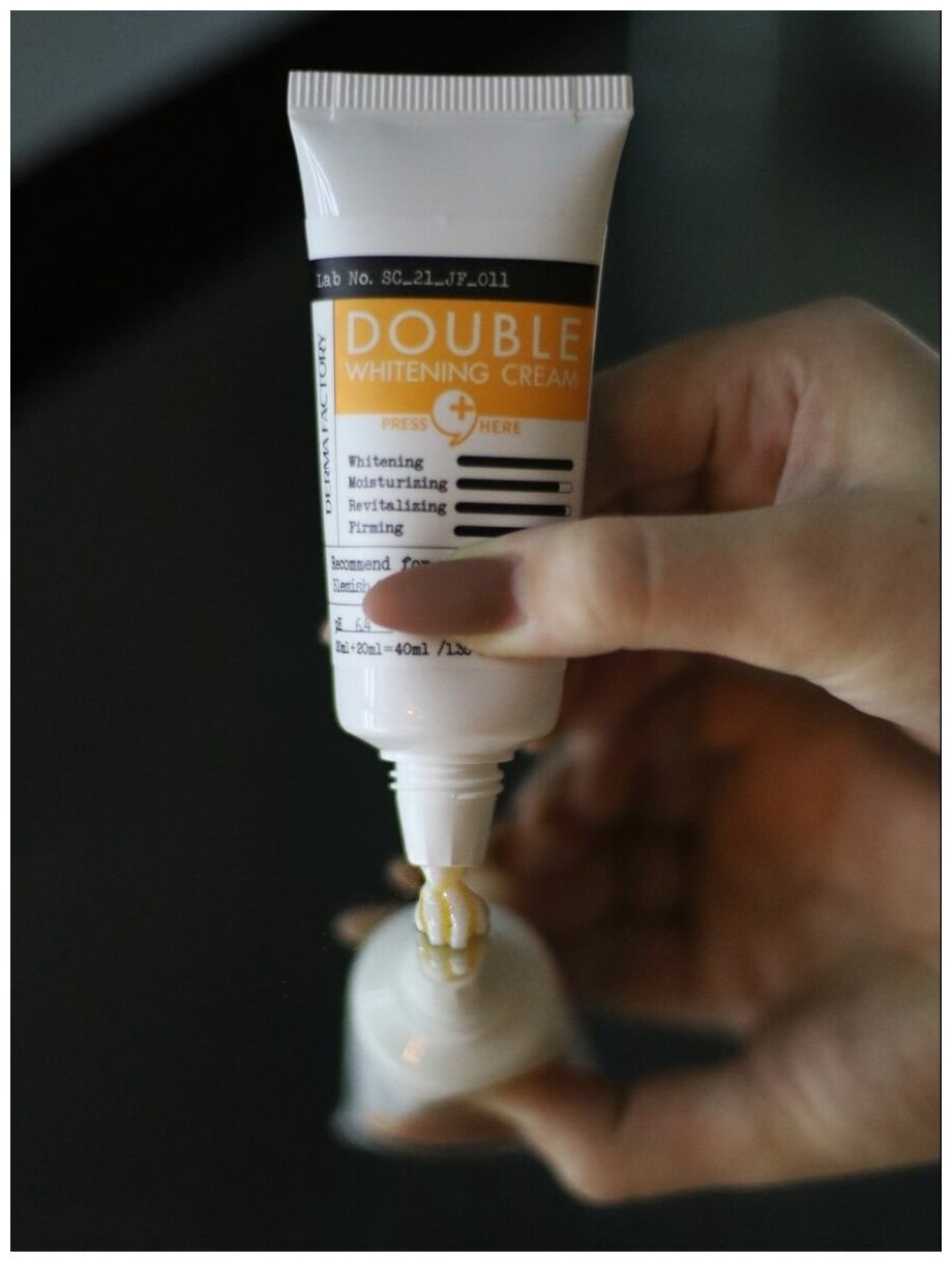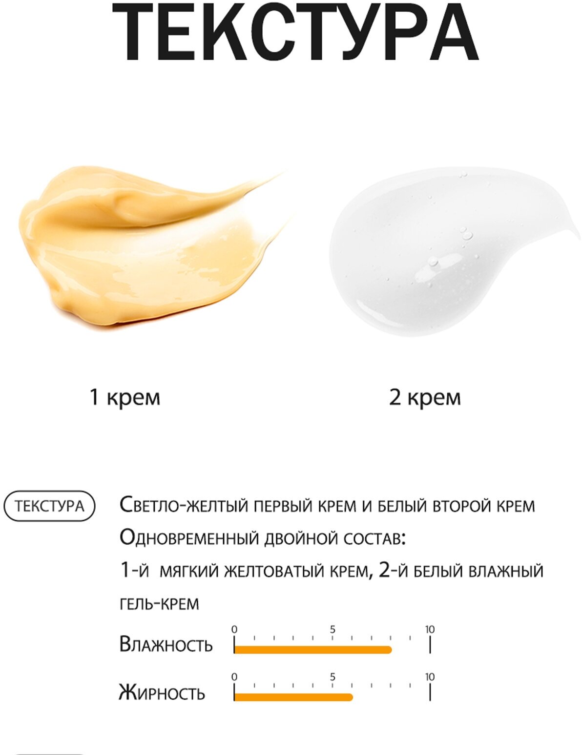 Новая концепция отбеливающего крема из двух активных кремов одновременно. Отбеливающий крем, содержащий 6% транексамовой кислоты и глутатион 2000 ppm, делает тусклую кожу светлой и яркой. Двойная формула, состоящая из липкого желтого крема и влажного белого гелевого крема мягко распределяется, превосходно удерживает влагу и дает плотное покрытие. Рекомендуется использовать только на ночь, а если есть раздражение кожи во время адаптации, использовать крем через 1 или 3 дня. Использовать в течение 6 месяцев после вскрытия. Избегайте одновременного использования с косметикой, содержащей витамин С, чтобы не вызвать раздражение кожи.