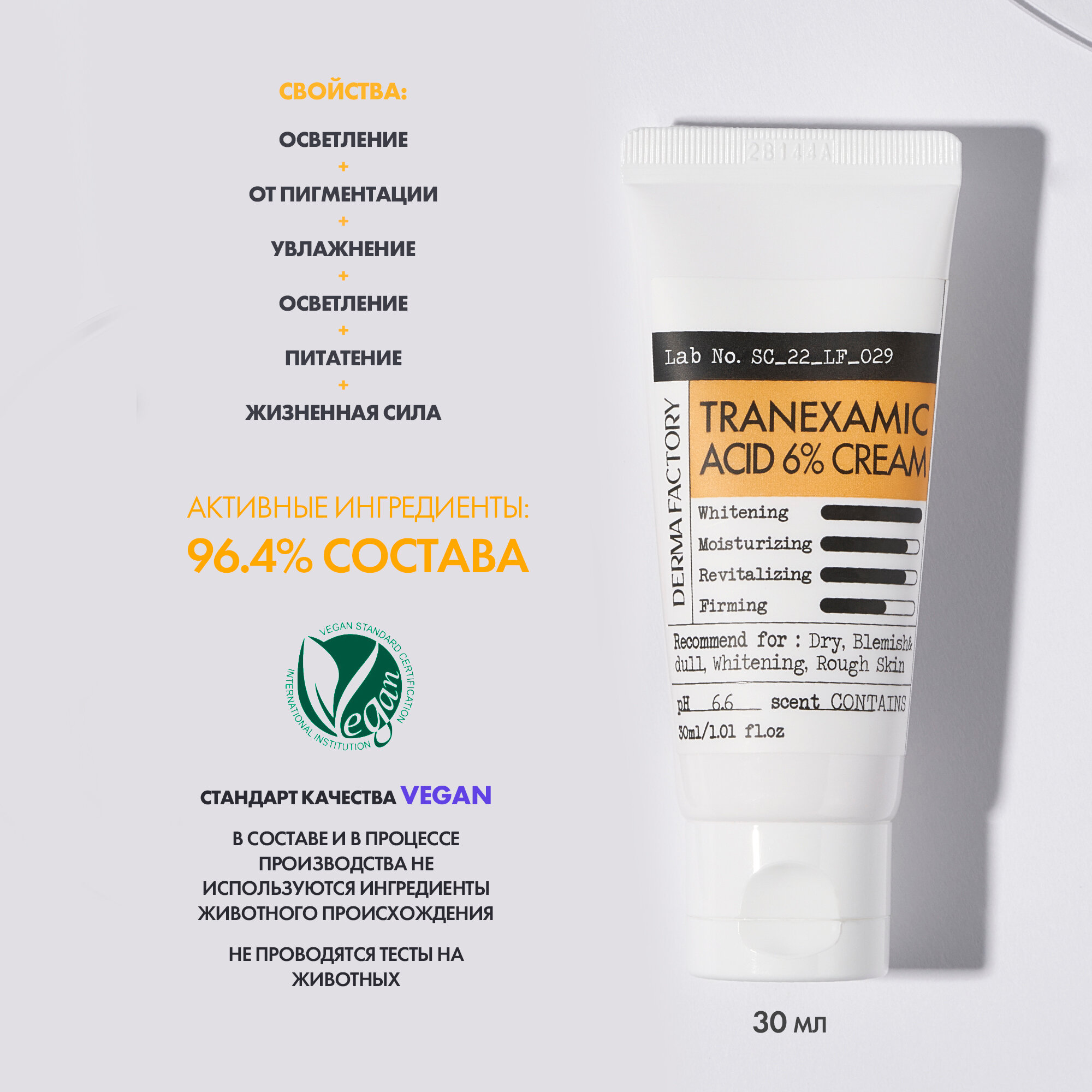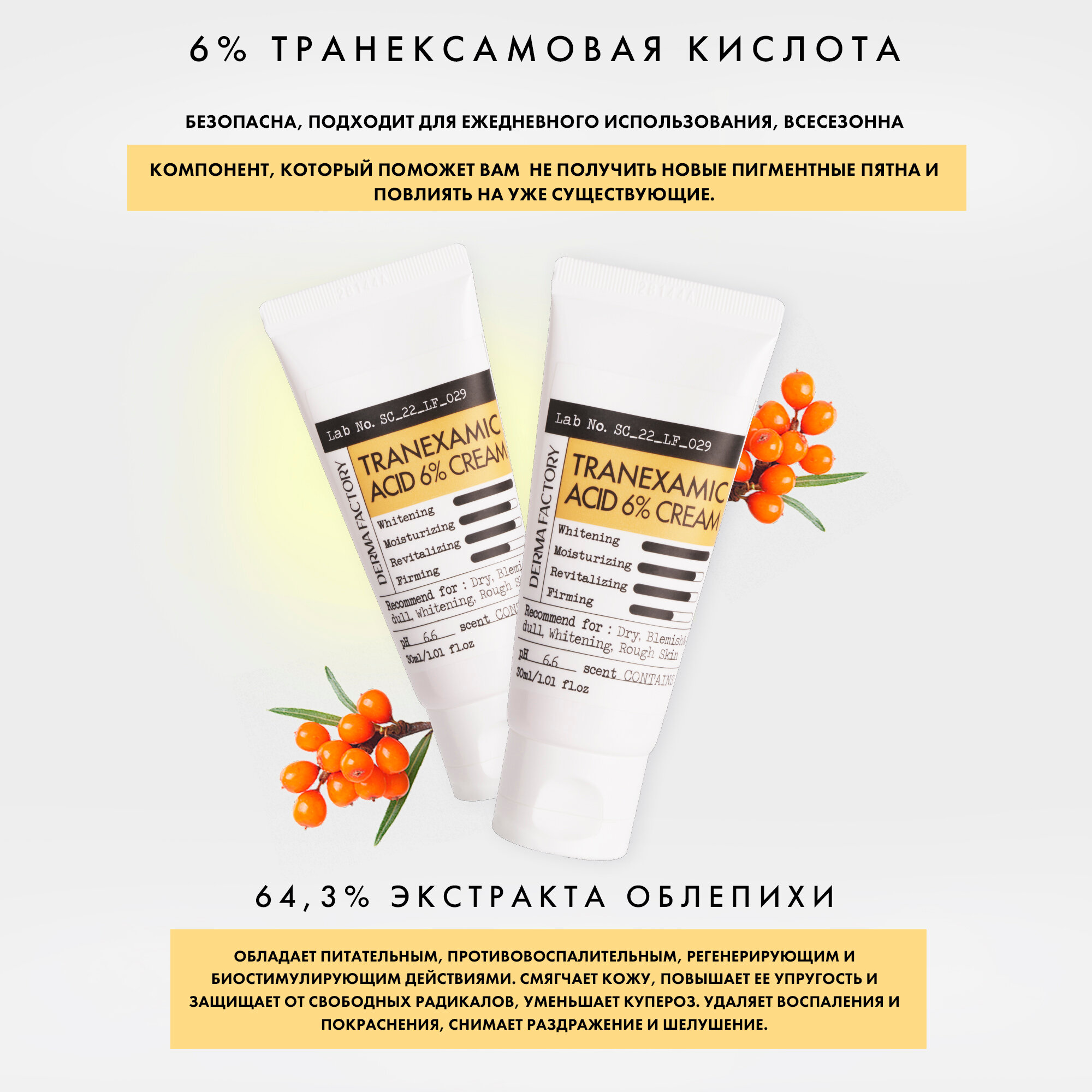 Крем для лица Derma Factory с транексамовой кислотой 6% Крем с 6% транексамовой кислотой - Tranexamic acid 6% cream, 30мл