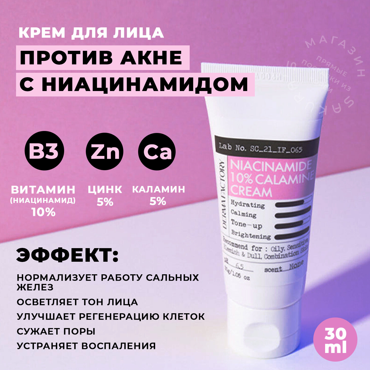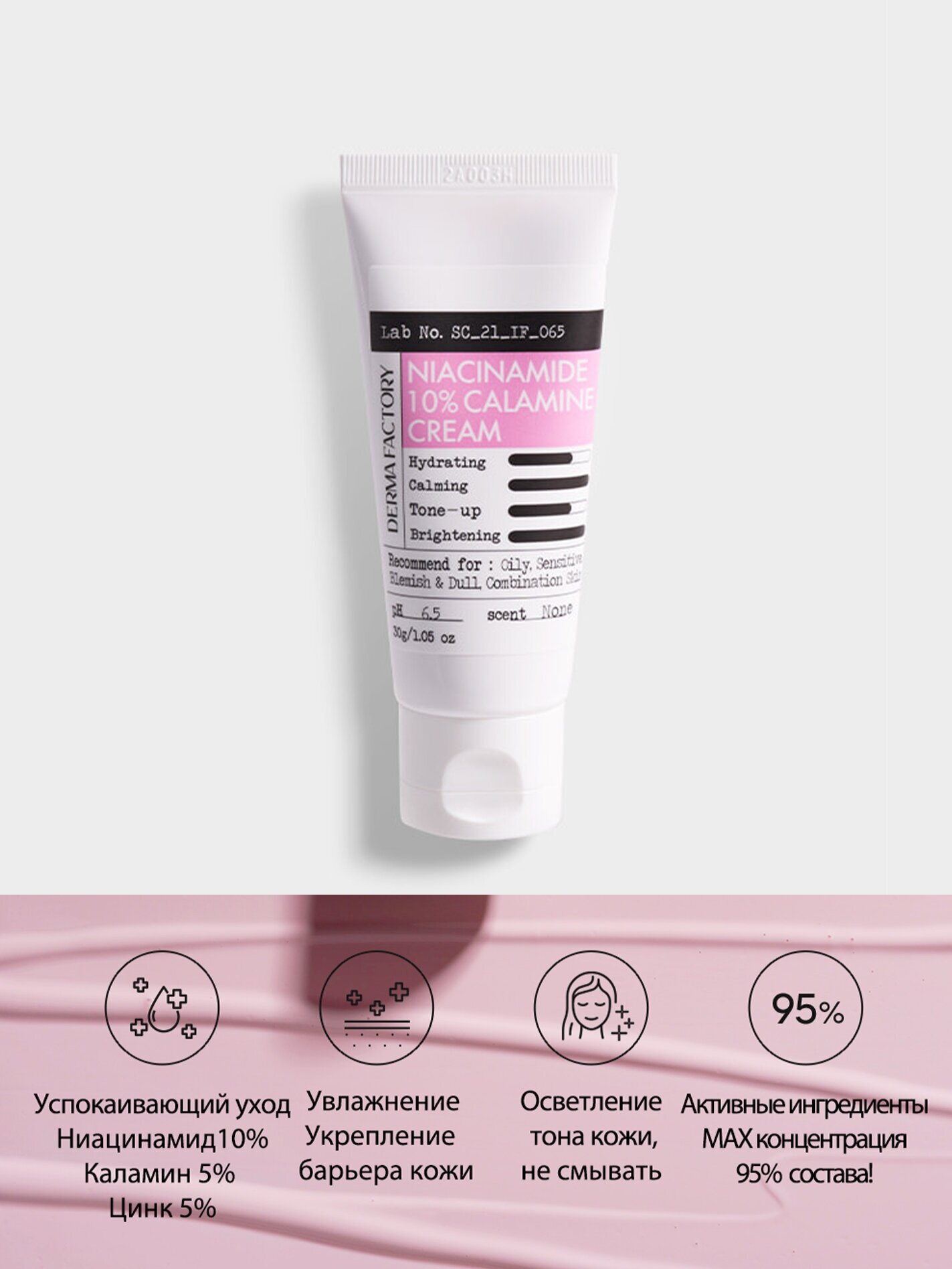Крем для лица Derma Factory Niacinamide 10% с ниацинамидом и каламином (600225)