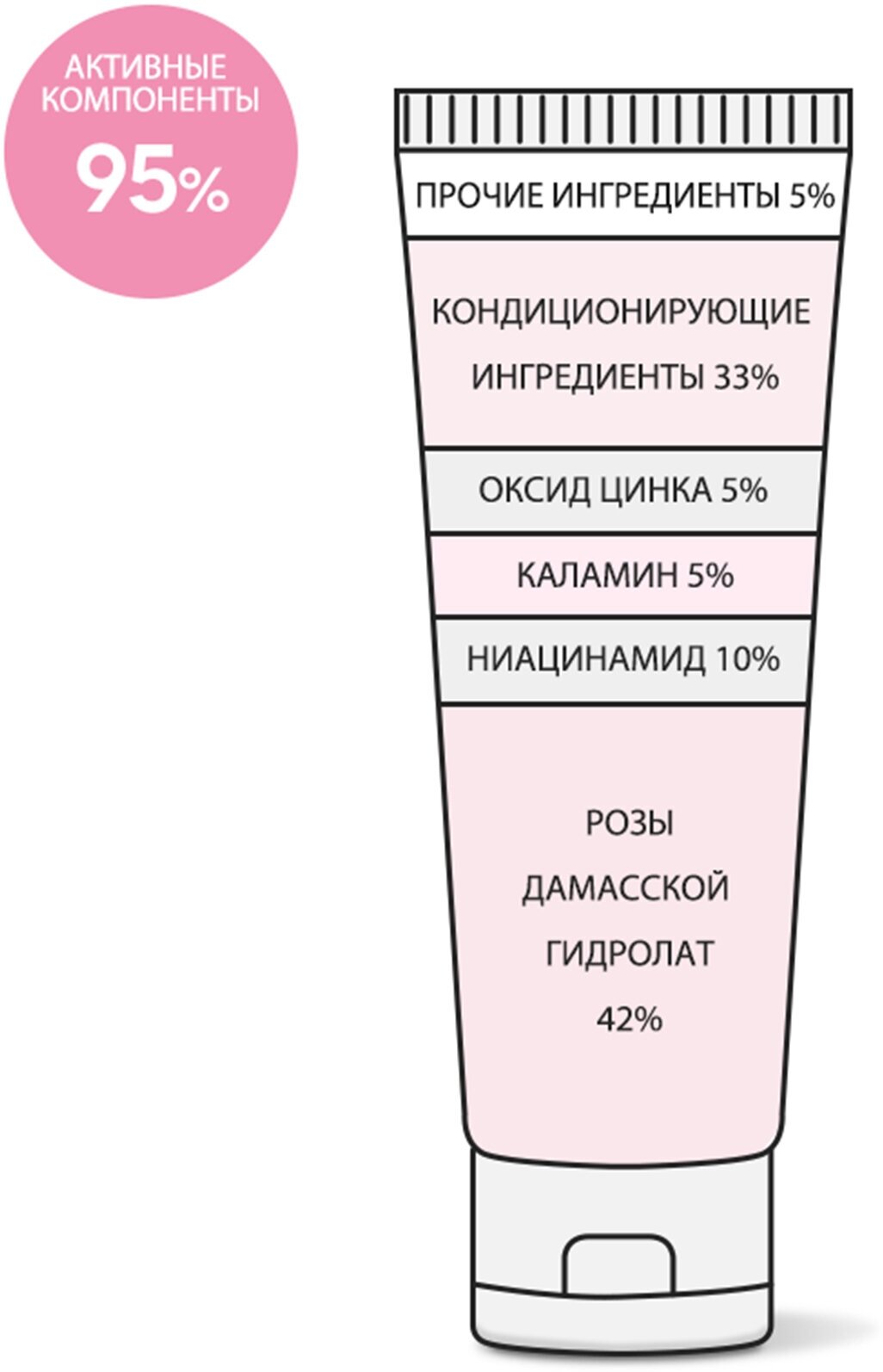 | Активный ингредиент | витамин B3 (ниацинамид), каламин, экстракт дамасской розы, каламин, ниацинамид |
