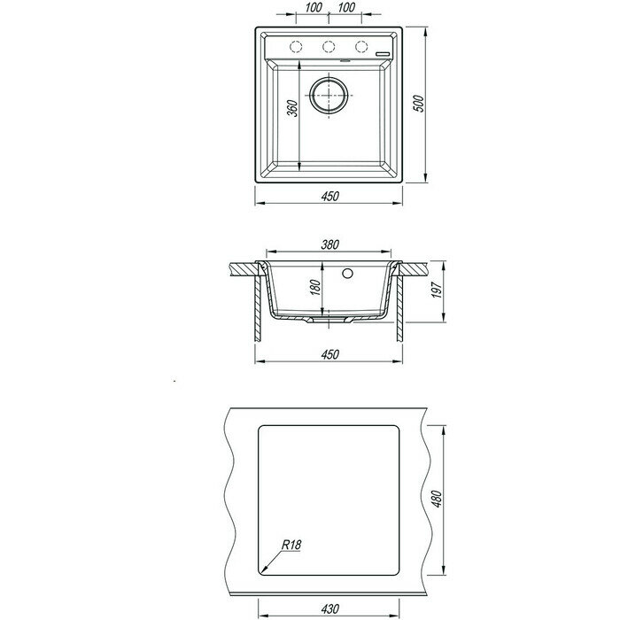 | Отверстия для смесителя | С 3 отверстиями под смеситель, Без отверстий под смеситель |