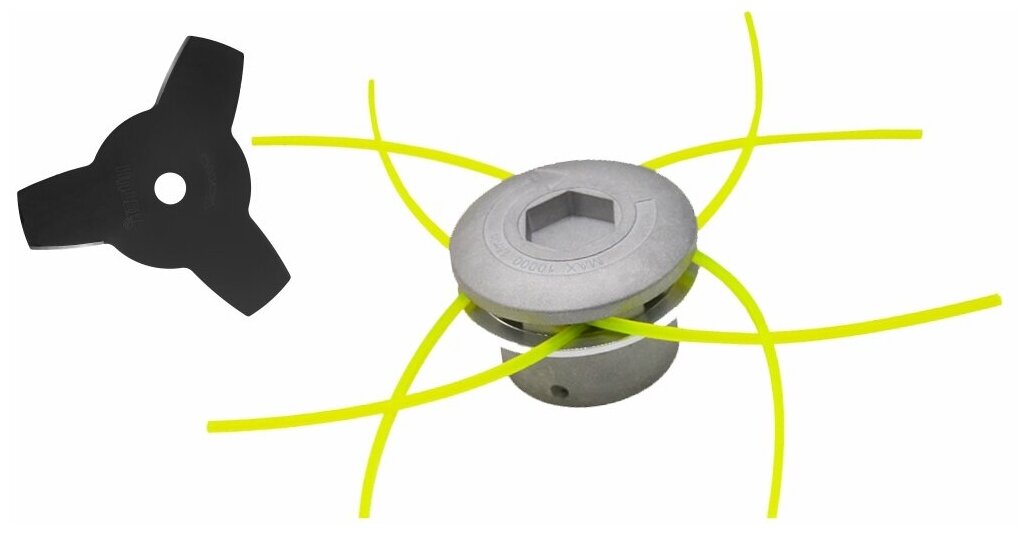 | Комплектация | Двигатель в сборе - 1 шт. Штанга в сборе с редуктором - 1 шт. Защитный кожух - 1 шт. Режущий диск - 1 шт. Катушка с леской - 1 шт. Складная рукоятка управления - 1 шт. Колеса - 2 шт. Комплект ключей - 1 шт. Паспорт продукции - 1 шт. Емкость для приготовле |