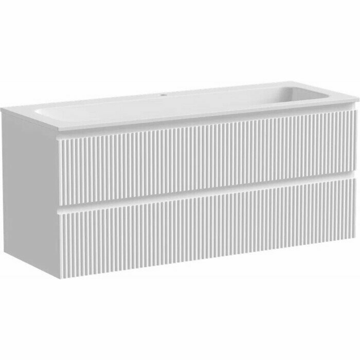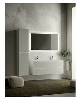 Тумба под раковину Sancos Snob R 120 SNR120W bianco c двумя выдвижными ящиками, оснащенными доводчиками. Цвет: Bianco. Выполнена в современном стиле. Монтаж настенный. Раковина в комплекте не идет. Покрытие корпуса: пленка. Поверхность корпуса матовая. Поверхность фасада матовая. Бельевой корзины в комплекте нет. Страна производства: Италия.