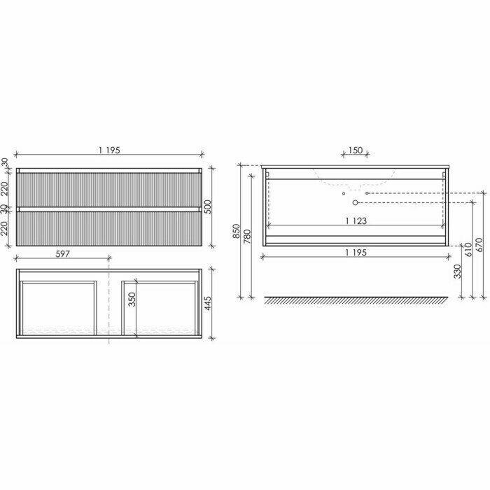- Габариты (ШхВхГ): 1195х500х455 мм.