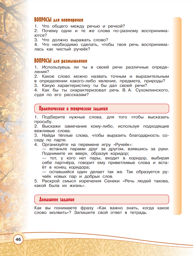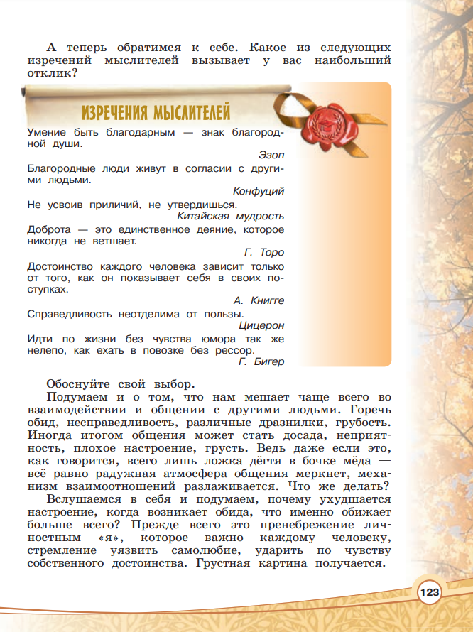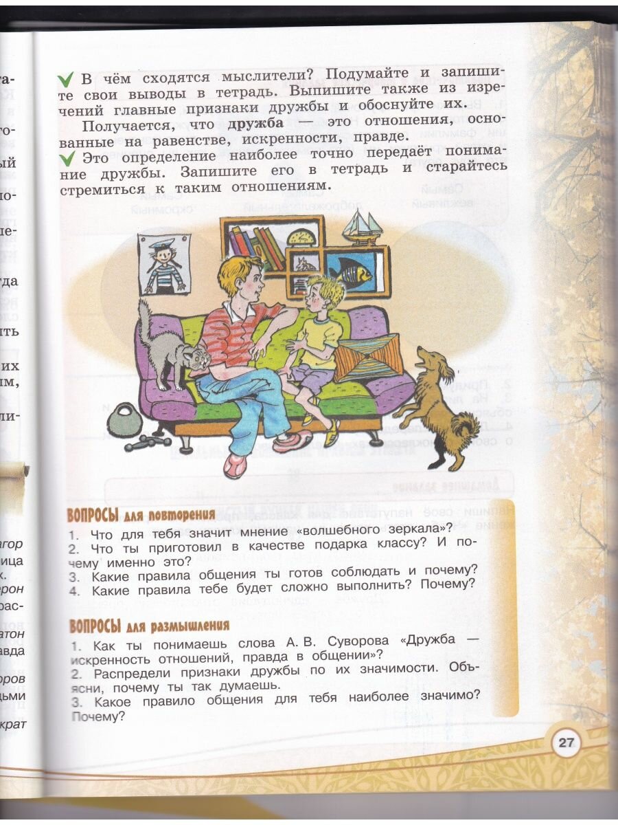 Надеемся, что учебник подскажет вам решение многих проблем, которые возникают в вашей жизни, поможет стать добрее, отзывчивее, доброжелательнее, более чутко и бережно относиться к людям и природе, т. е. стать нравственными людьми.