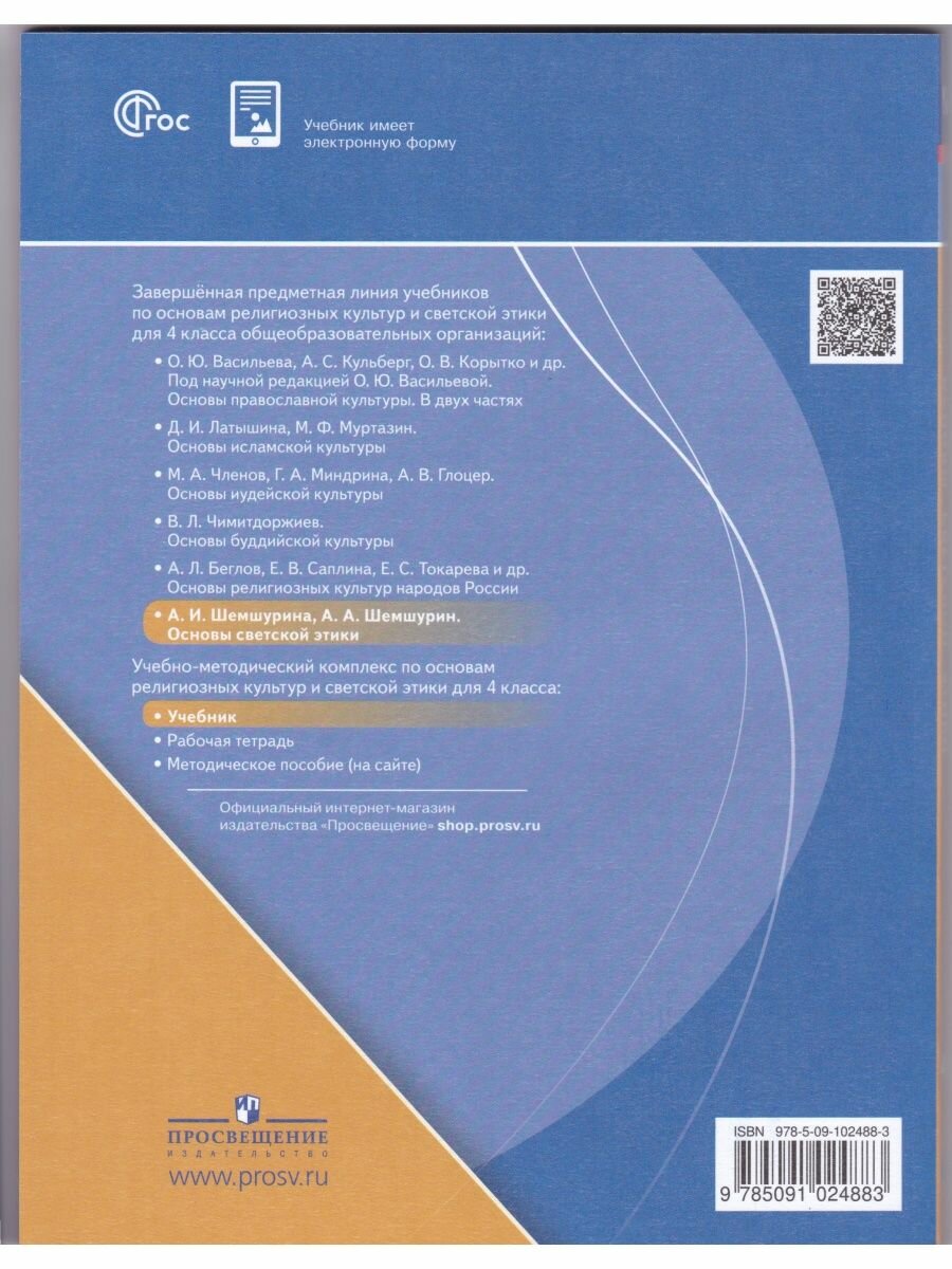 Основы светской этики. 4 класс. Учебник. ФГОС (Шемшурина Алла Ивановна, Шемшурин Алексей Андреевич); Просвещение, 2023
