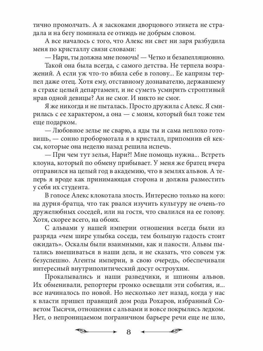 - Катрина Радова становится Найришей, и активно пытается прикинуться серой мышью и не отсвечивать. Вот только если Катя Радова была реально скромной, спокойной и уравновешенной (да, тараканы иногда поднимали восстание в её голове, но это всё же было исключение из правила), то Нарин начала раздражать меня примерно с 15-ой страницы своими попытками влезть в чужую шкуру. И особенно моему неприятию ЖГГ способствовало постоянно упоминание автором, что ЖГГ вся такая особенная-преособенная, с крутым магическим даром, со страшной тайной в прошлом и кучей стекла за плечами, поэтому, вот, прошу любить и не обижать.