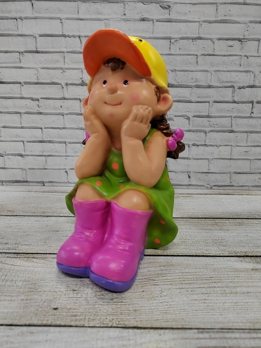 Фигурка Девочка с лейкой -очень милое украшение для сада и дома , размер фигуры 10*12*19 см, данная фигура выполнена из полистоуна . Фигуры из полистоуна являются одними из самых популярных материалов для украшения дачного участка. Этот искусственный камень сочетает в себе все качества природного материала: он устойчив к воздействию влаги и солнечным лучам. При должном уходе садовые фигуры из полистоуна будут долгие годы украшать сад и радовать своих обладателей. Мальчик прекрасно впишется как в клубму , так и на веранде или крыльце дома , украшая ваш сад или дом , вы приобретаете внутреннюю гармонию и уют, ведь все интерьеры создаются из мелочей , приятных глазу.