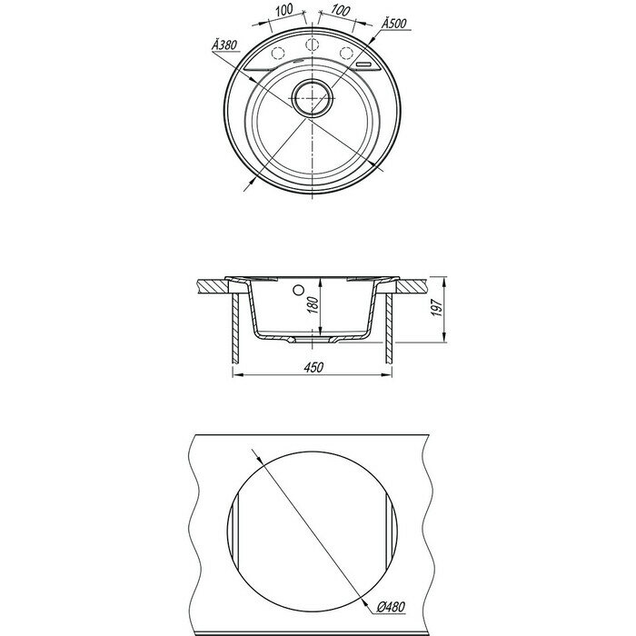 | Намеченные отверстия под смеситель | 3 |