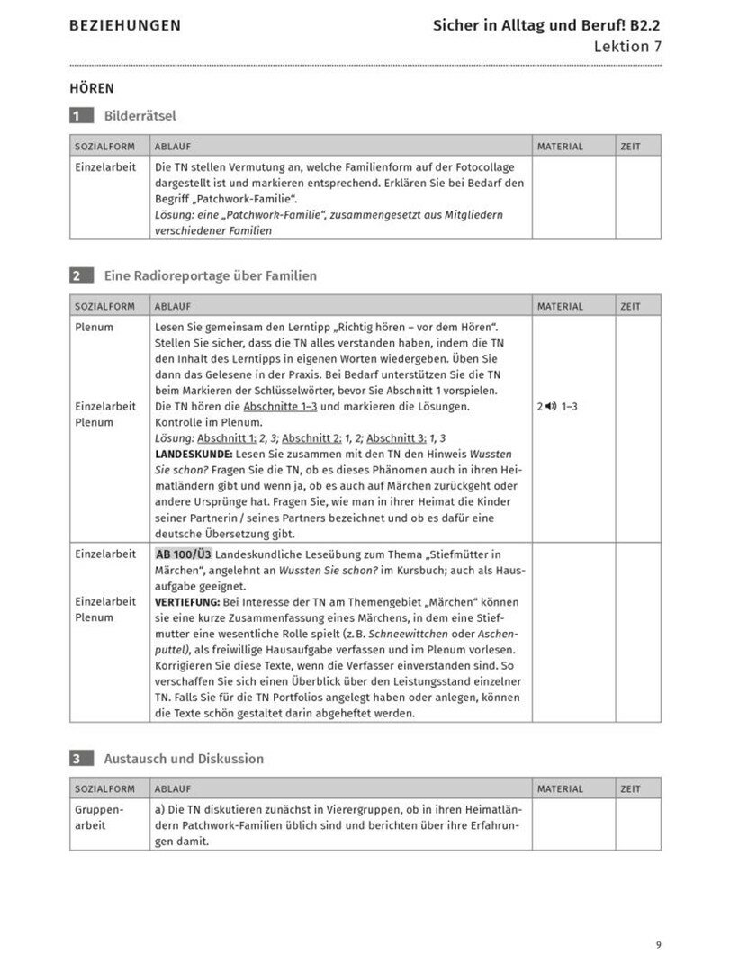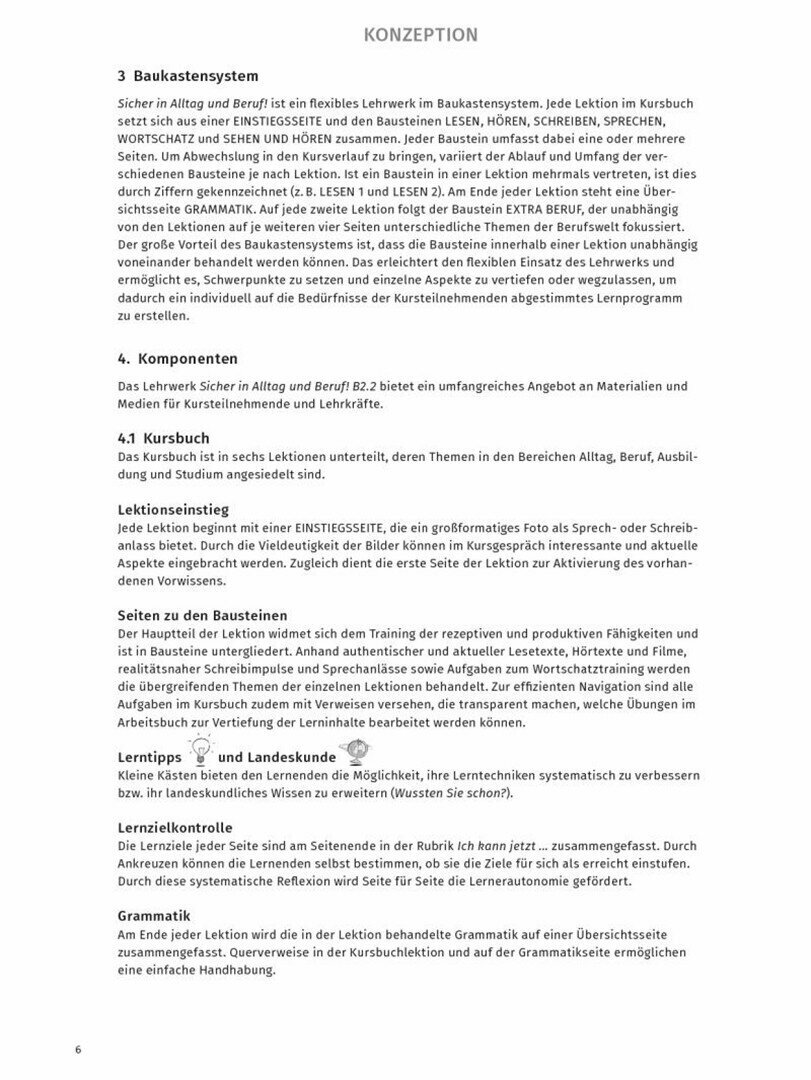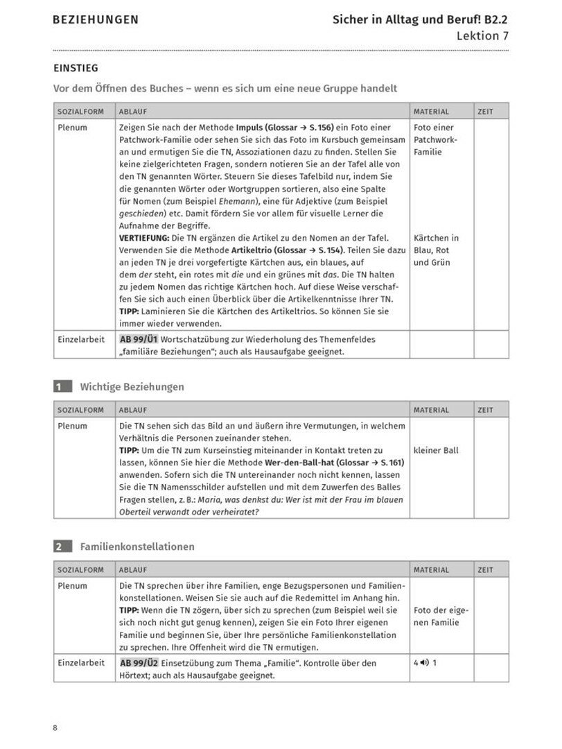 - methodisch-didaktische Hinweise zu jeder Seite im Kursbuch mit praktischen Tipps zu Unterrichtsmethoden und zur Binnendifferenzierung (Vertiefungsaufgaben), Verknupfung der Arbeitsbuchaufgaben, Hinweise zu Mein Dossier, Phonetik, Lernwortschatz und Tests