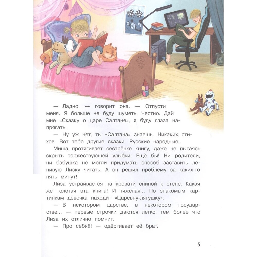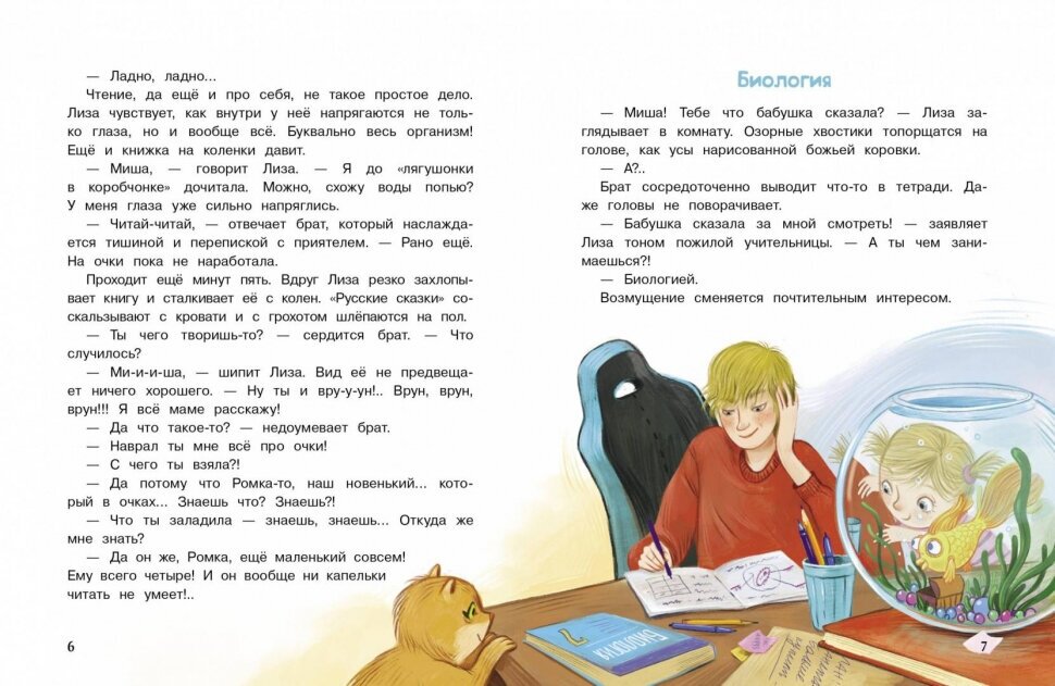 Лизе пять лет, а её брату Мише - тринадцать. И они живут в одной комнате. Конечно ей достаётся, и брат частенько над ней подшучивает, но с ним так интересно! Миша и про инфузорию-туфельку расскажет, и про Вещего Олега, и научит, как избавиться от лишних зубов, и устроит посиделки при свечах, когда отключат свет. А ещё... Впрочем, открывайте книгу и сами про всё узнаете!