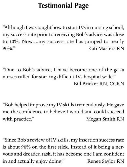Nurses and paramedics pass down intravenous skills to new employees as best they can, but the fine details are often missed or forgotten. Bob Rynecki, a registered nurse and an award-winning paramedic, wrote this guide so you can establish peripheral intravenous lines easily and effectively. Taking a no-frills approach, he delivers the tricks and tips that will enable you to: * become the go-to person for starting difficult IVs;