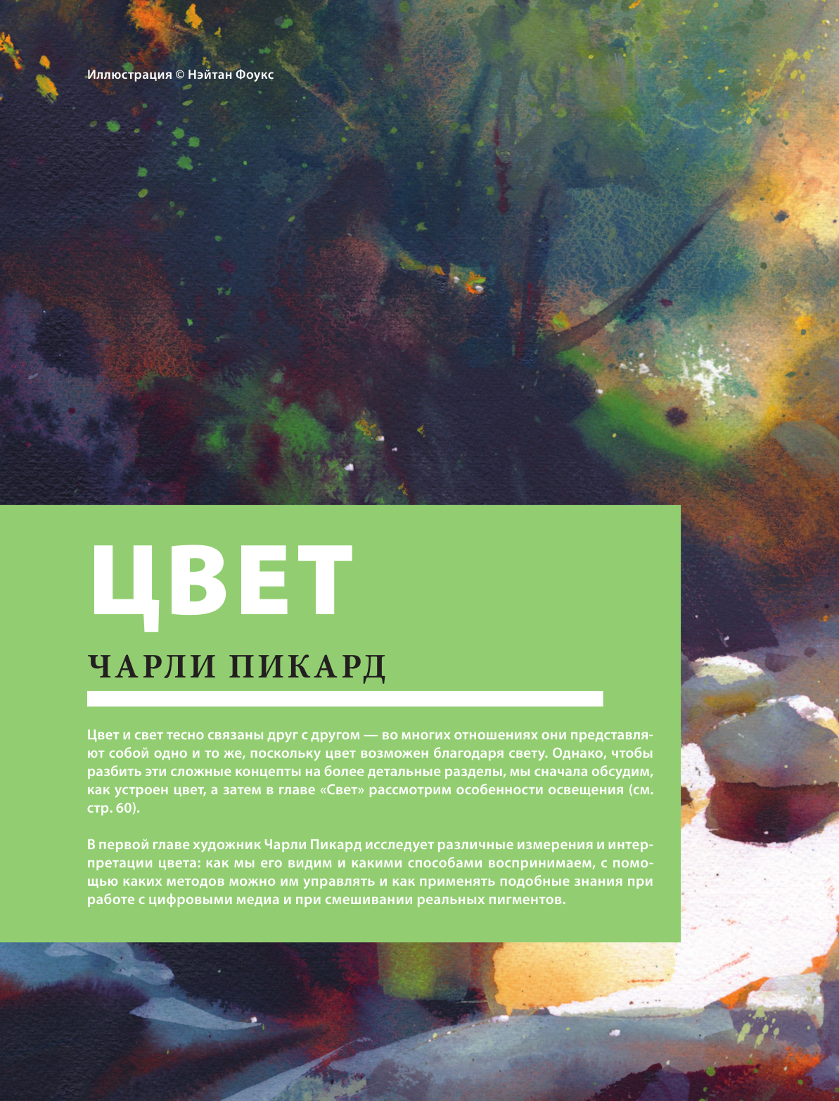 Всемирно известные художники собрали под одной обложкой как основы, которые должен знать каждый новичок, так и темы, которые будут интересны в том числе и профессионалам. Вместе с ними вы научитесь анализировать цвета, понимать их иерархию, смешивать их и управлять ими, работать с оттенками и значениями, а также рассмотрите обширную тему света.
