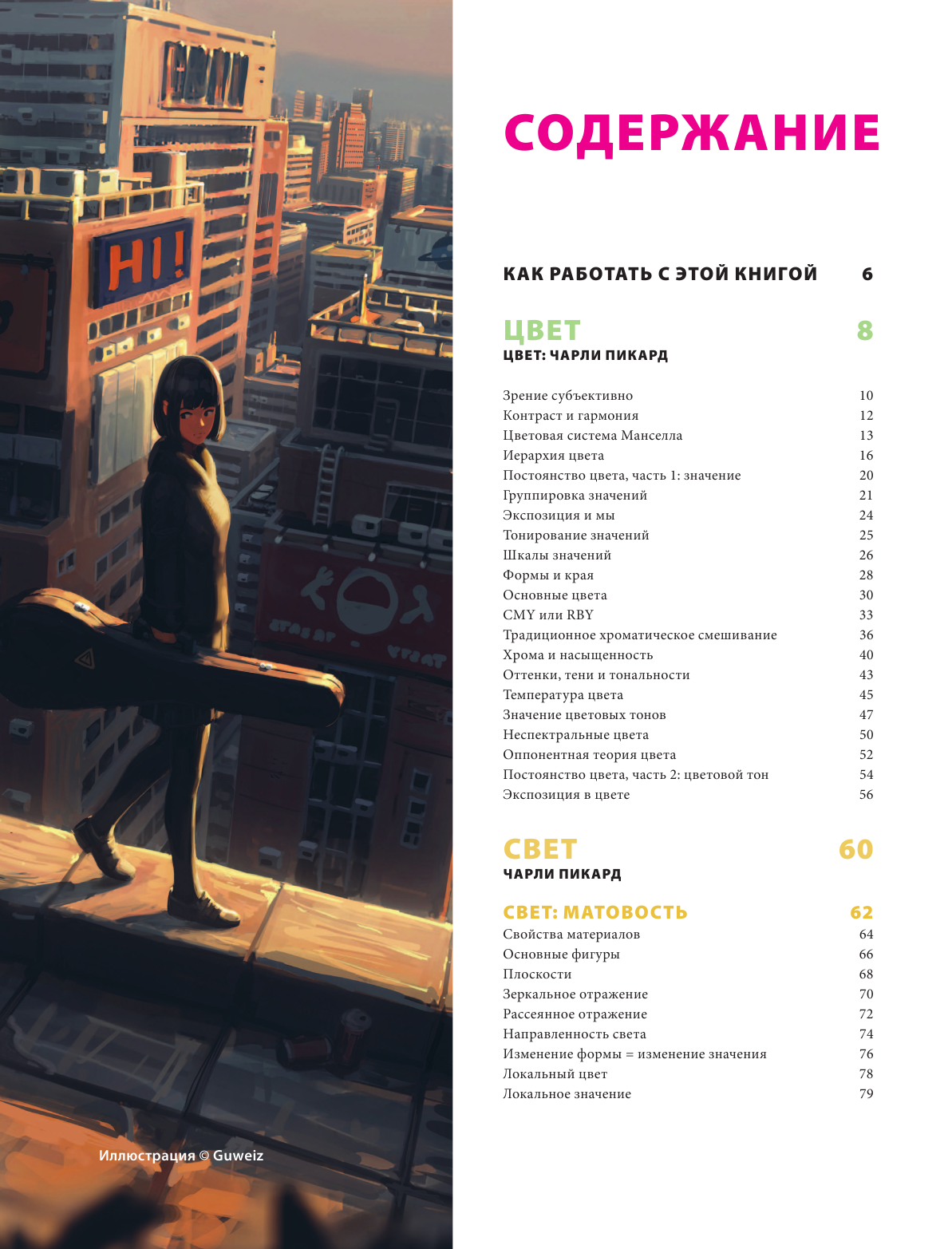Джамила Кнопф, Guweiz и Нэйтан Фоукс подготовили подробные пошаговые мастер-классы, чтобы показать, как они используют цвет и свет в своих работах и как применять теорию на практике. Все три художника работают в совершенно не похожих направлениях, благодаря чему вы познакомитесь с широким диапазоном подходов и сможете поработать в разных стилях.