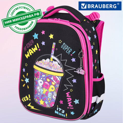 Ранец BRAUBERG серии PREMIUM самой популярной капсульной формы среди ранцев. Изготовлен из легкого, формоустойчивого, экологичного материала EVA с качественной и яркой печатью и различными эффектами. В комплекте с ранцем поставляется брелок-подвеска.