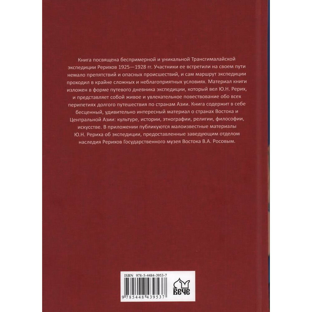 Книга посвящена беспримерной и уникальной Трансгималайской экспедиции Рерихов 1925—1928 гг. Участники ее встретили на своем пути немало препятствий и опасных происшествий, и сам маршрут экспедиции проходил в крайне сложных и неблагоприятных условиях. Материал книги изложен в форме путевого дневника экспедиции, который вел Ю.Н. Рерих, и представляет собой живое и увлекательное повествование обо всех перипетиях долгого путешествия по странам Азии. Книга содержит в себе бесценный, удивительно интересный материал о странах Востока и Центральной Азии: культуре, истории, этнографии, религии, философии, искусстве. В приложении публикуются малоизвестные материалы Ю.Н. Рериха об экспедиции, предоставленные заведующим отделом наследия Рерихов Государственного музея Востока В.А. Росовым.