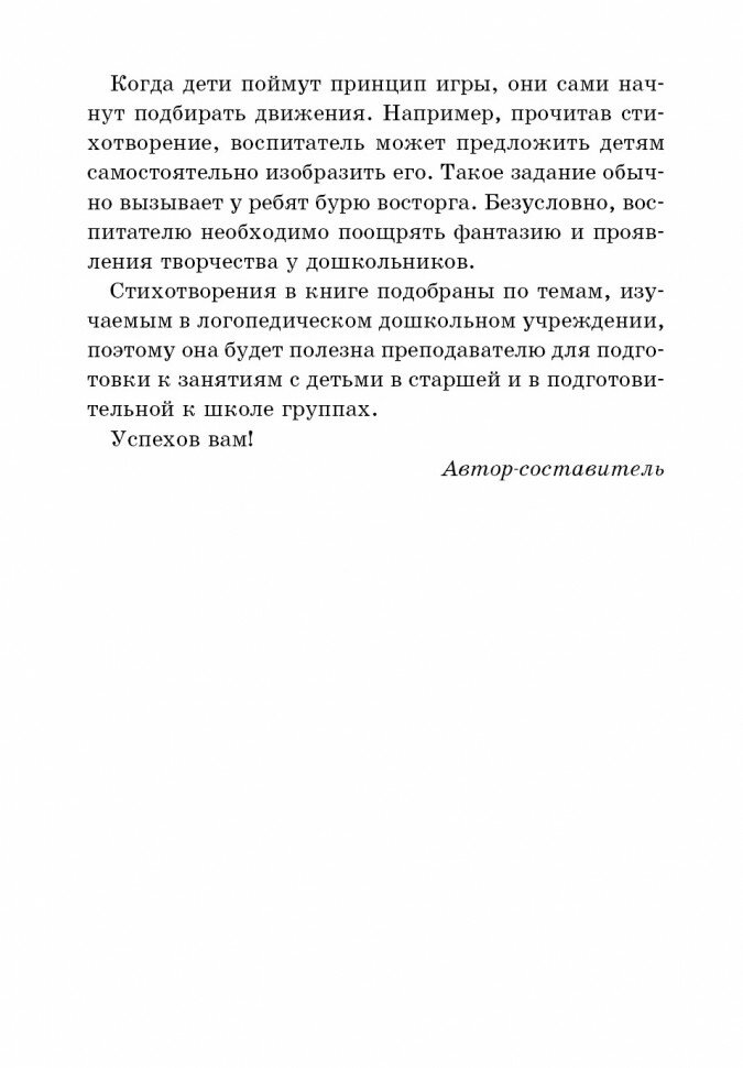 Стихотворения в книге подобраны по темам, изучаемым в логопедическом дошкольном учреждении, поэтому она будет полезна преподавателю для подготовки к занятиям с детьми в старшей и в подготовительной к школе группах.