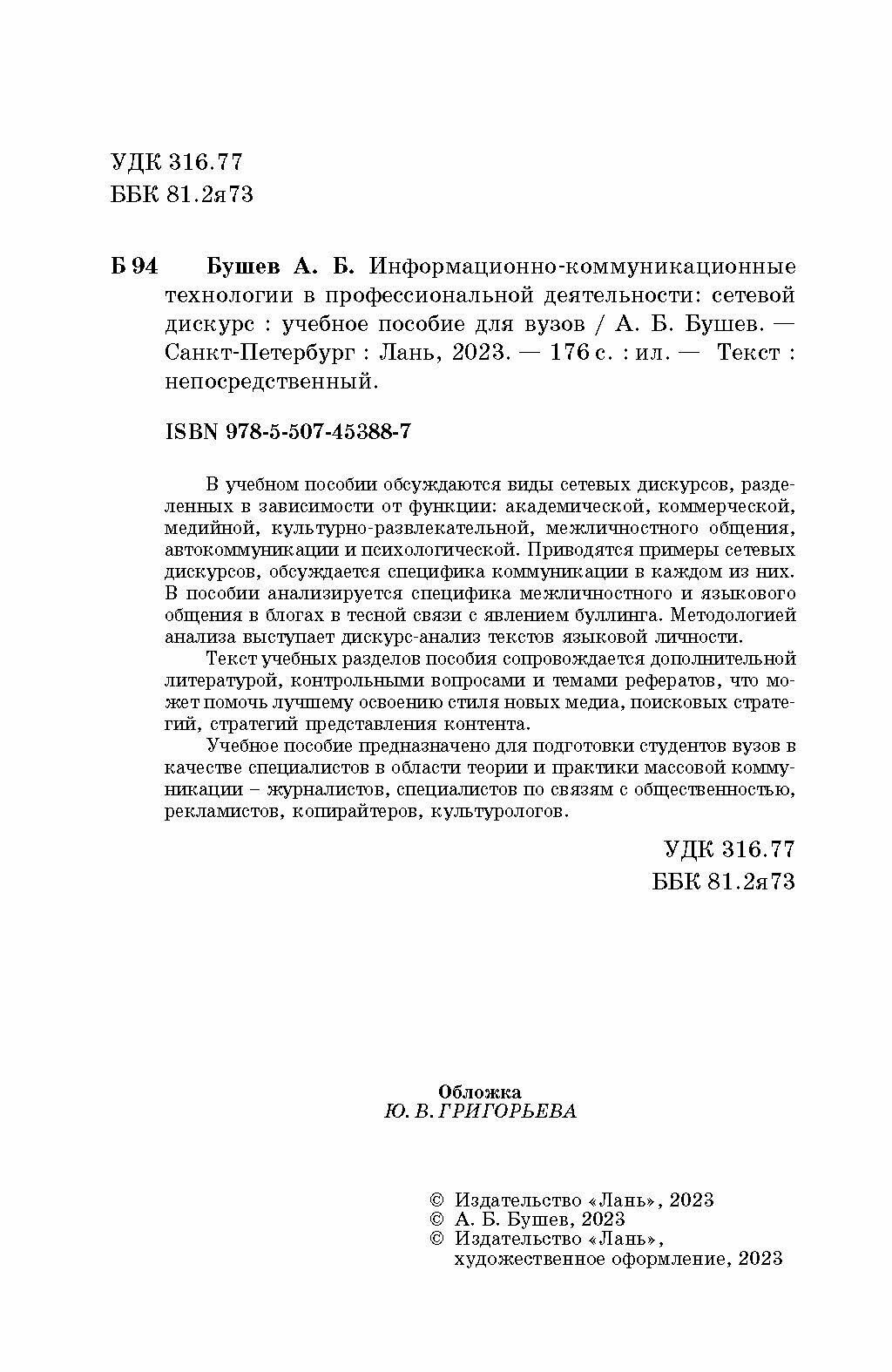 Сервис сравнения цен СкидкаГИД предлагает сравнить цены на товар «Книга: Информационно-коммуникационные технологии в профессиональной деятельности. Сетевой дискурс (Коллектив авторов); Издательство ЛАНЬ, 2023»