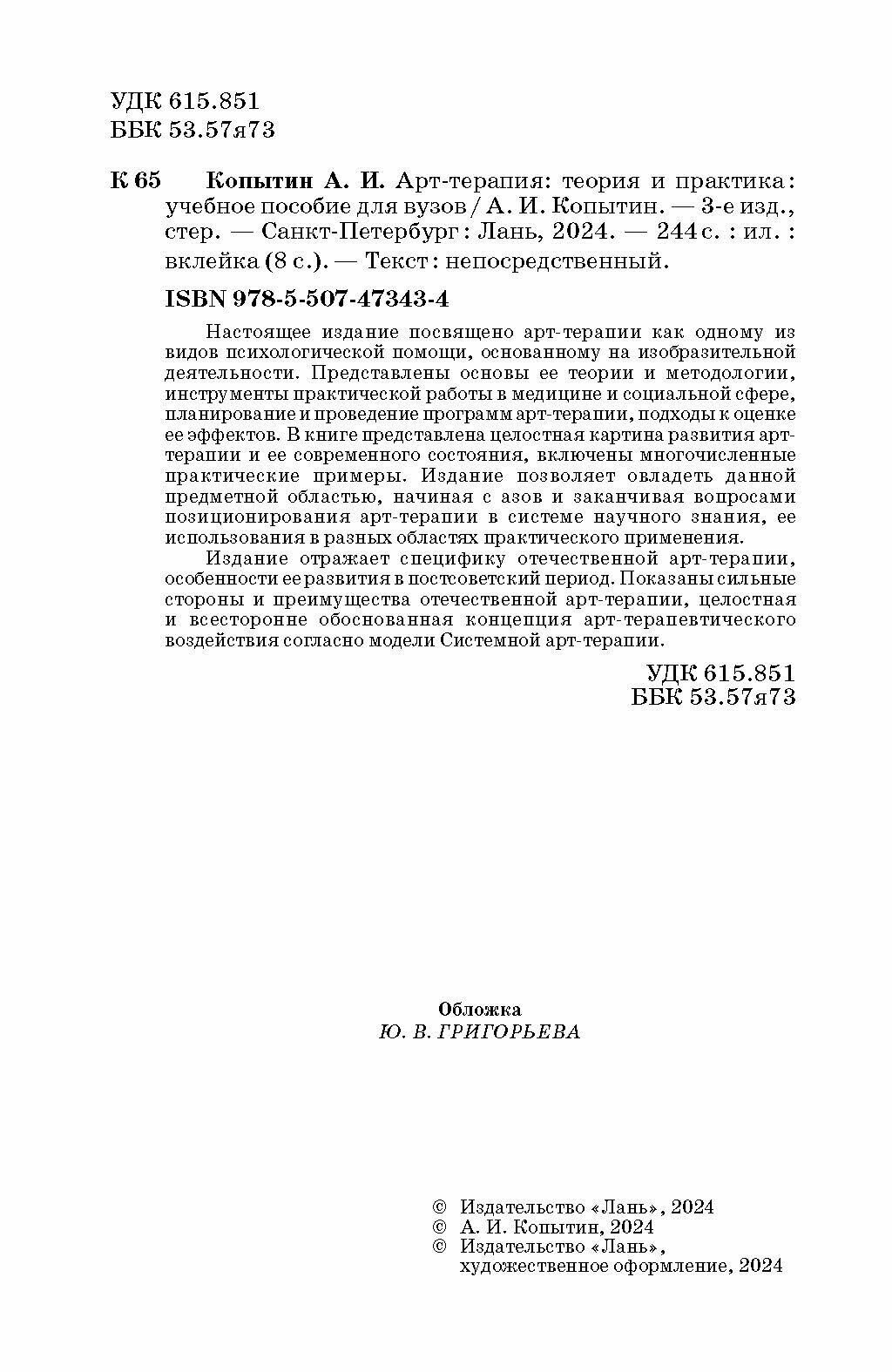 Сервис сравнения цен СкидкаГИД предлагает сравнить цены на товар «Книга: Арт-терапия. Теория и практика (Александр Иванович Копытин); Издательство ЛАНЬ, 2023»