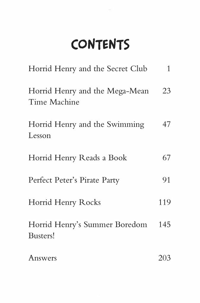 School's out so have a super summer with Horrid Henry! A great value collection of six favourite Horrid Henry summer stories in one book, with loads of fun activities at the back to keep boredom away. Join Henry as he creates havoc at the swimming pool, goes on stage at the coolest concert ever, and faces Moody Margaret in the battle of the Purple Hand Gang vs The Secret Club -- plus much, much more! Featuring: Horrid Henry and the Secret Club Horrid Henry and the Mega-Mean Time Machine Horrid Henry and the Swimming Lesson Horrid Henry Reads a Book Horrid Henry and the Pirate Party Horrid Henry Rocks