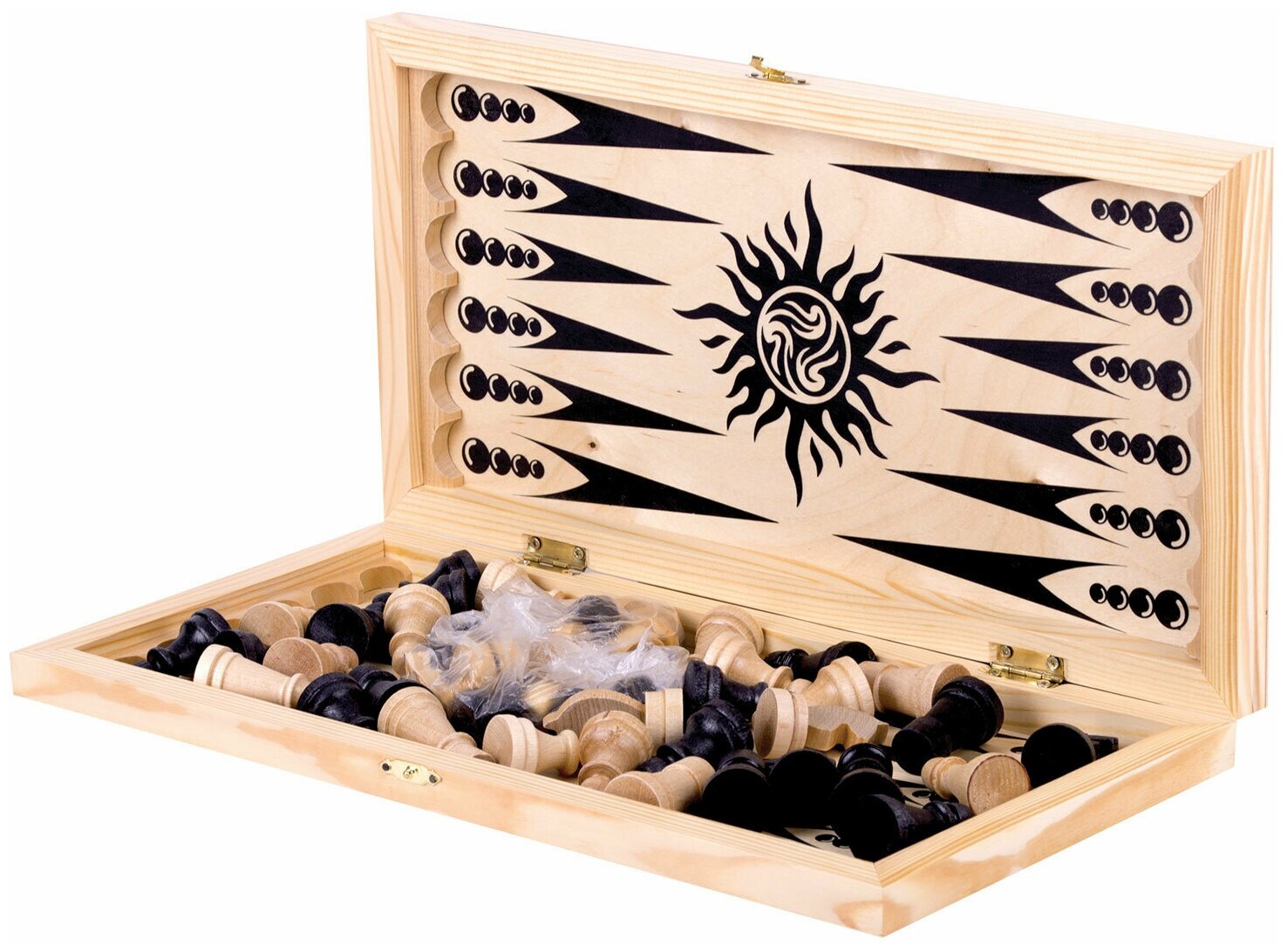 Золотая сказка Шахматы, шашки, нарды 3 в 1 деревянные