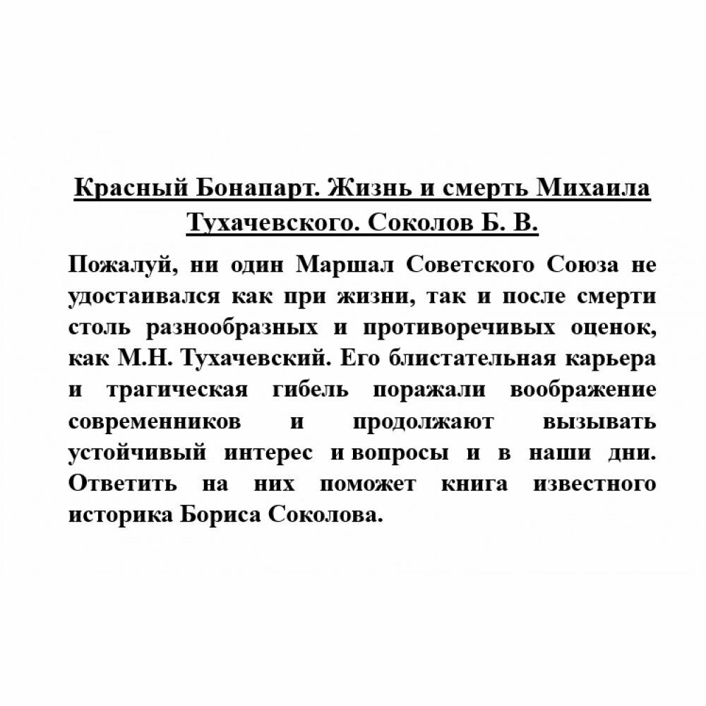 Сервис сравнения цен СкидкаГИД предлагает сравнить цены на товар «Книга: Красный Бонапарт. Жизнь и смерть Михаила Тухачевского (Борис Соколов); Вече, 2023»