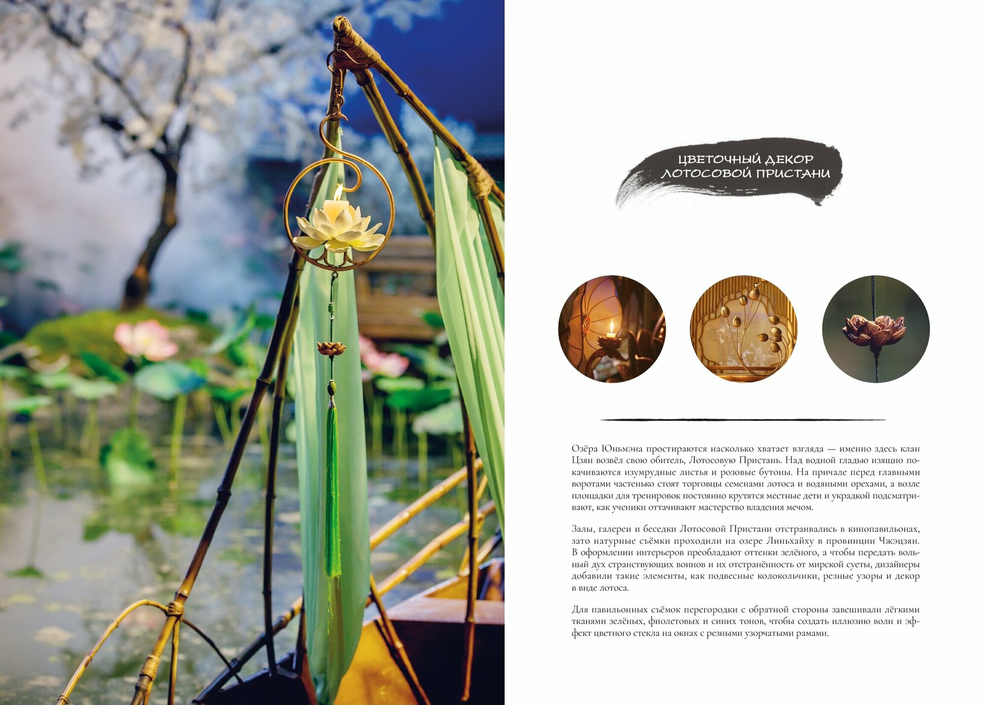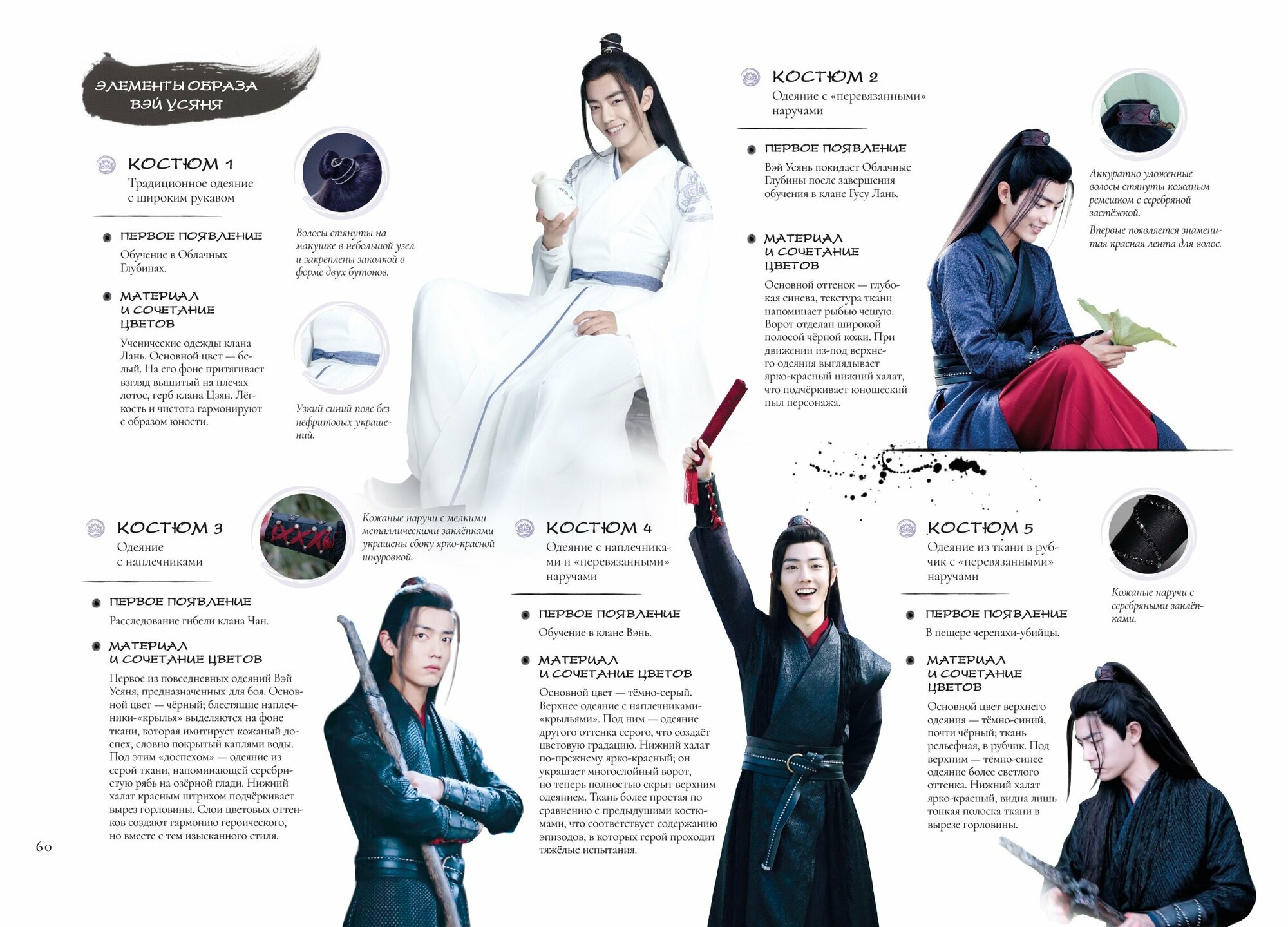 распределены по своим кланам, правда, почему-то в клане Цзинь не хватает Цзинь Гуаньшаня и Цзисюня, хотя они так-то не последние в сюжете. Зато есть очень подробный разбор костюмов и оружия героев, а также описание традиций, утвари и деталей интерьеров всех локаций: от резиденций орденов до города И! Благодаря такой невероятно крутой профессиональной проработке деталей фильма мы и получили полноценный живой мир! Огромное спасибо всем, кто способствовал изданию этой прекрасной книги. -