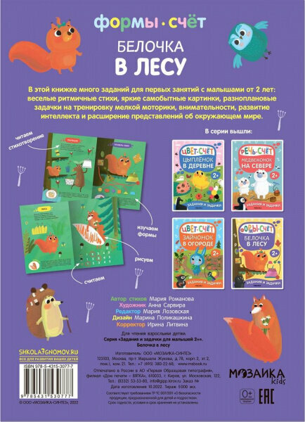 Задания и задачки для малышей 2+. Белочка в лесу. Формы счет (Мария Романова); МОЗАИКА kids, 2022