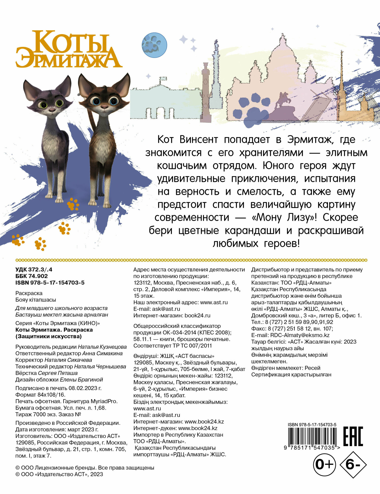 Коты Эрмитажа. Раскраска (Защитники искусства) (Симакина Анна (редактор)); АСТ, 2023