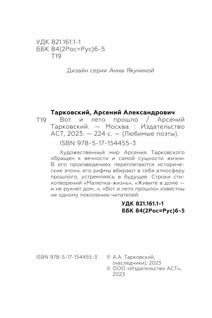 Книга: Вот и лето прошло (Тарковский Арсений Александрович); ИЗДАТЕЛЬСТВО "АСТ", 2023