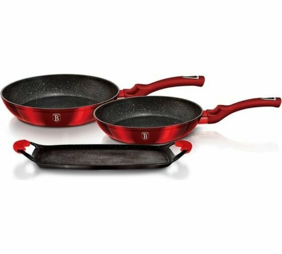 | Состав набора | Сковорода диаметром 22 см Сковорода диаметром 26 см Пластина для гриля 36х23 см |