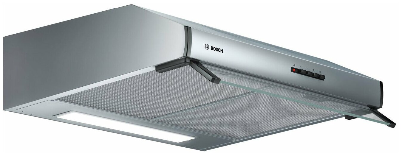 Вытяжка Bosch — идеальное решение для небольшой кухни. Прибор встраивается в шкаф или крепится к стене. При компактных размерах модель имеет высокую производительность и обеспечивает хорошее освещение варочной поверхности.