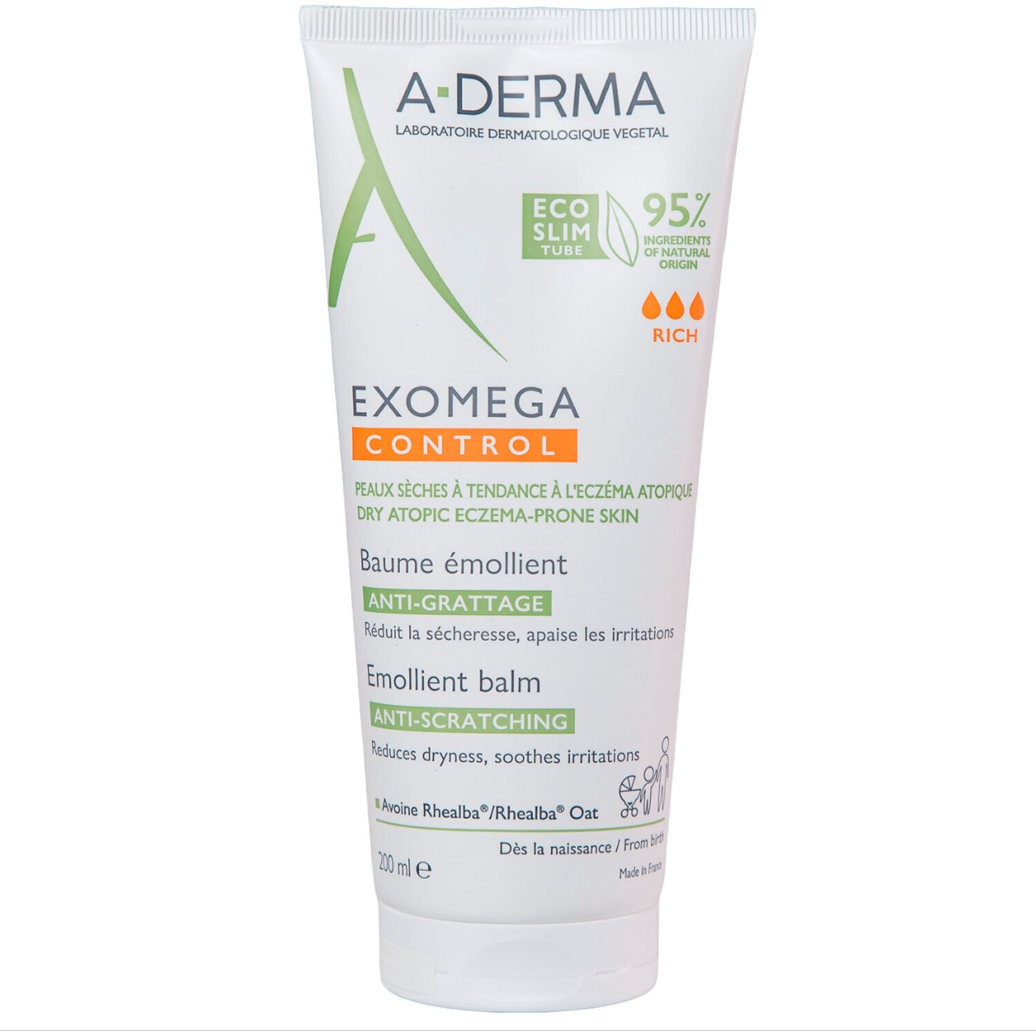 Насыщенная, ультранежная текстура A-Derma Exomega Control Baume Émollient идеально подходит для ухода за сухой и атопичной кожей лица и тела в зимний период. Средство моментально и надолго устраняет сухость кожи, смягчает, успокаивает раздражение и зуд. Мягкая формула без отдушек позволяет использовать бальзам для ухода за кожей детей с первых дней жизни. Средство быстро впитывается, не оставляя липкой или жирной пленки. Кожа становится нежной, увлажненной и мягкой, хорошо переносит воздействие внешней агрессивной среды. Формула содержит более 95% веществ натурального происхождения. Стерильная упаковка позволяет сохранять эффективность формулы без добавления консервантов.