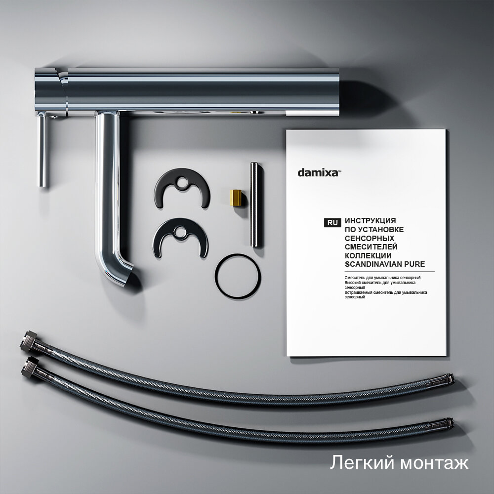 Cмеситель для раковины Damixa Scandinavian Pure 360250000. Смесители Scandinavian Pure - классика минималистичного скандинавского дизайна в трендовом матовом черном исполнении.Притягательные цилиндрические формы и плавный силуэт корпуса делают дизайн коллекции узнаваемым и универсальным. А ручка в виде стика станет ярким акцентом и привнесет особую эстетику в интерьер ванной комнаты. Скрытые коммуникации освобождают дополнительное пространство для реализации самых смелых дизайнерских идей. Управляйте потоком воды на 2 потребителя с помощью поворотного дивертора. Инновационное PVD-покрытие гарантирует чрезвычайную прочность смесителя. Матово-черная поверхность не выцветает с годами и устойчива к механическим повреждениям, загрязнениям и отпечаткам пальцев. Такой смеситель прослужит вам минимум 10 лет. Смеситель; внутренняя латуная часть; декоративная тарелка; инструкция.