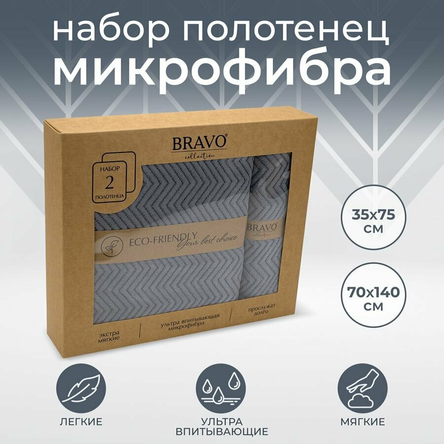 Набор полотенец BRAVO Крафт (35х75см+70х140см) серый м0904_11 (141234)