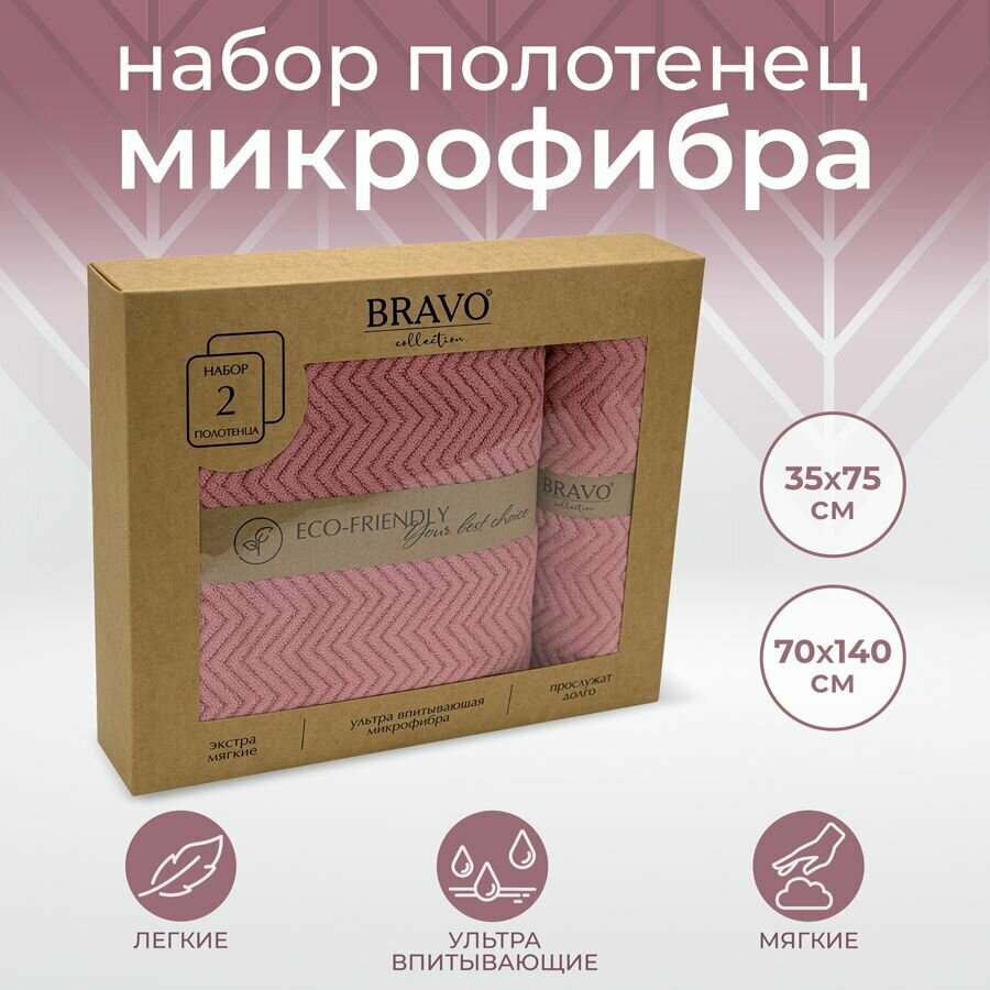 Набор полотенец BRAVO Крафт (35х75см+70х140см) розовый м0904_02 (141231)
