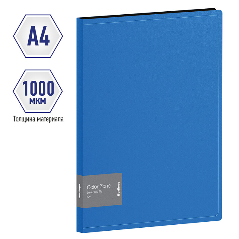 Папка с зажимом Color Zone синяя Berlingo "Color Zone", 17 мм, 1000 мкм, синяя