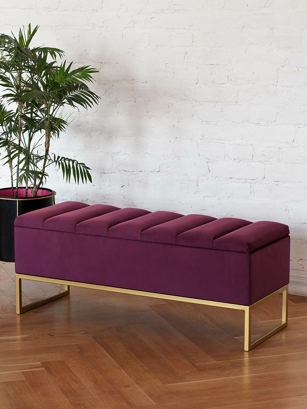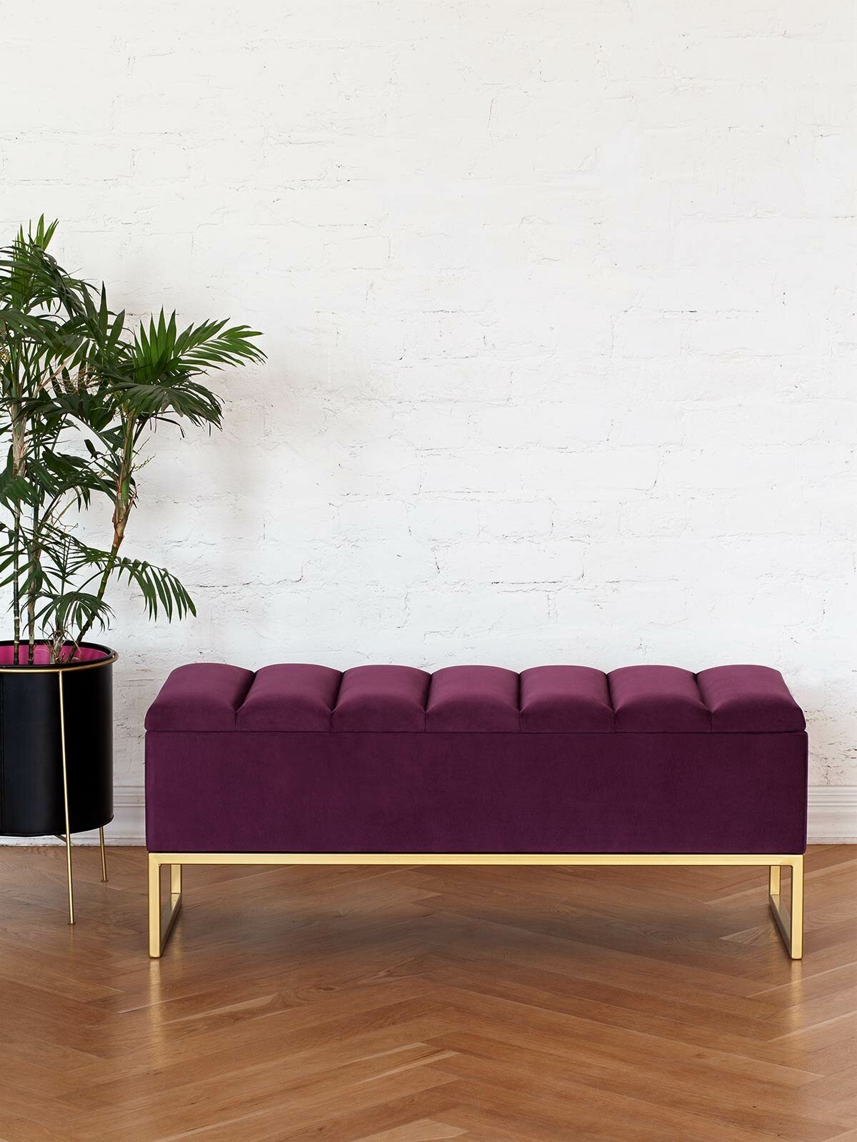 Банкетка CUBE с золотым основанием, мягкой велюровой подушкой со стяжкой Bulon и ящиком для хранения. Основание банкетки изготовлено из стали с полимерным покрытием. Собственное производство обеспечивает надежность и эстетику сварных швов металлической мебели. Банкетка с велюровой подушкой отличается элегантным видом и комфортной посадкой. Мягкая обивка с высокой износостойкостью, прошла тест Мартиндейла — 35 000 циклов. Бархатистая ткань легко чистится от загрязнений, для ухода разрешена сухая и влажная чистка. Стильная банкетка подойдет для прихожей, спальни, гостиной и кабинета. Модель оснащена ящиком для хранения. Банкетка лофт добавит изысканности интерьеру квартиры, офиса, салона и загородного дома. Банкетка отлично сочетается со стеллажами ALTO и пуфами OMEGA. Банкетку доставляем в собранном виде в надежной упаковке.
