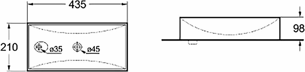 - Размеры (ШхВхГ): 435х98х210 мм.