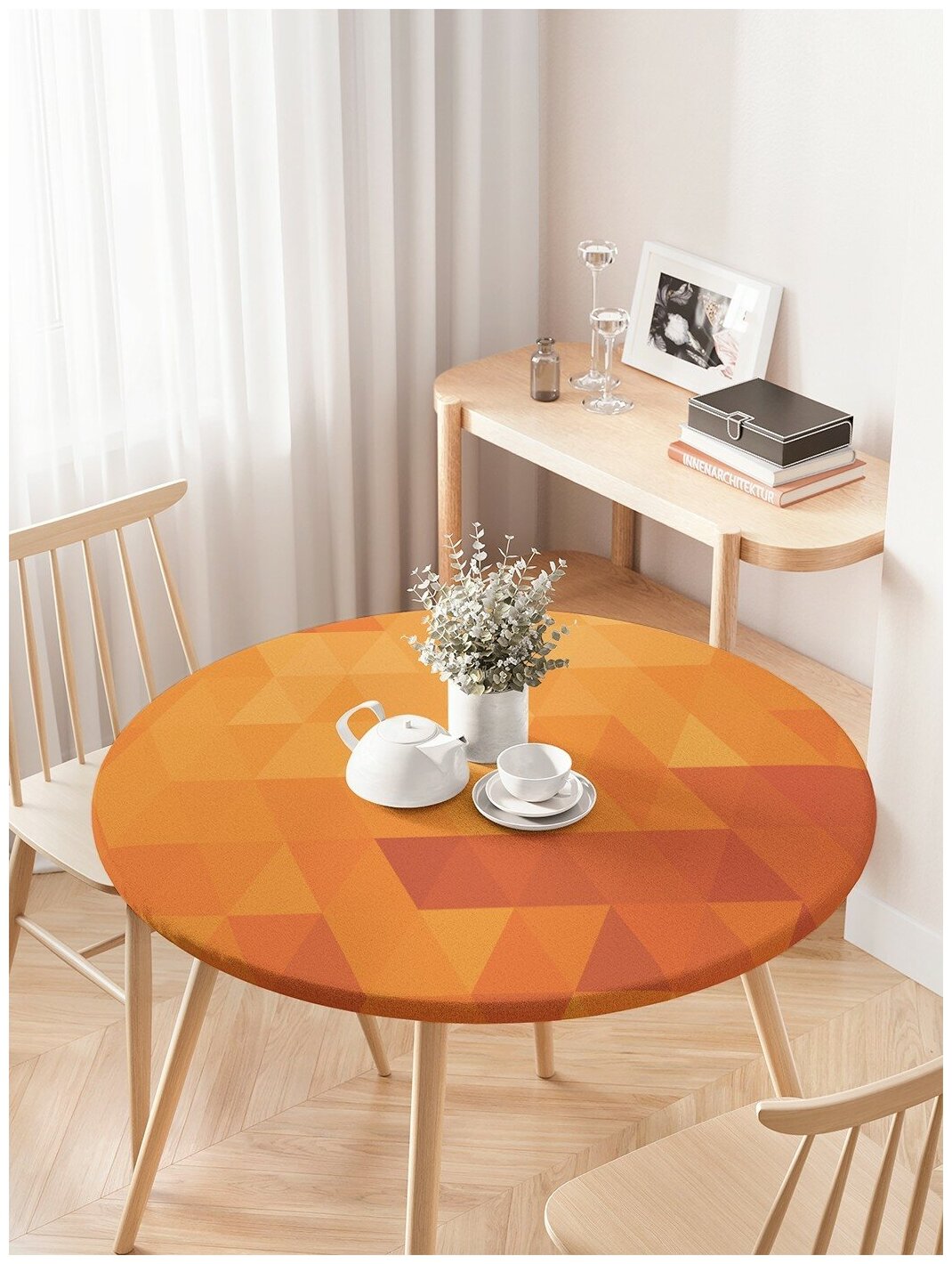 Модель: Скатерть на кухонный стол Геометрические узоры круглая на резинке 105x120 см