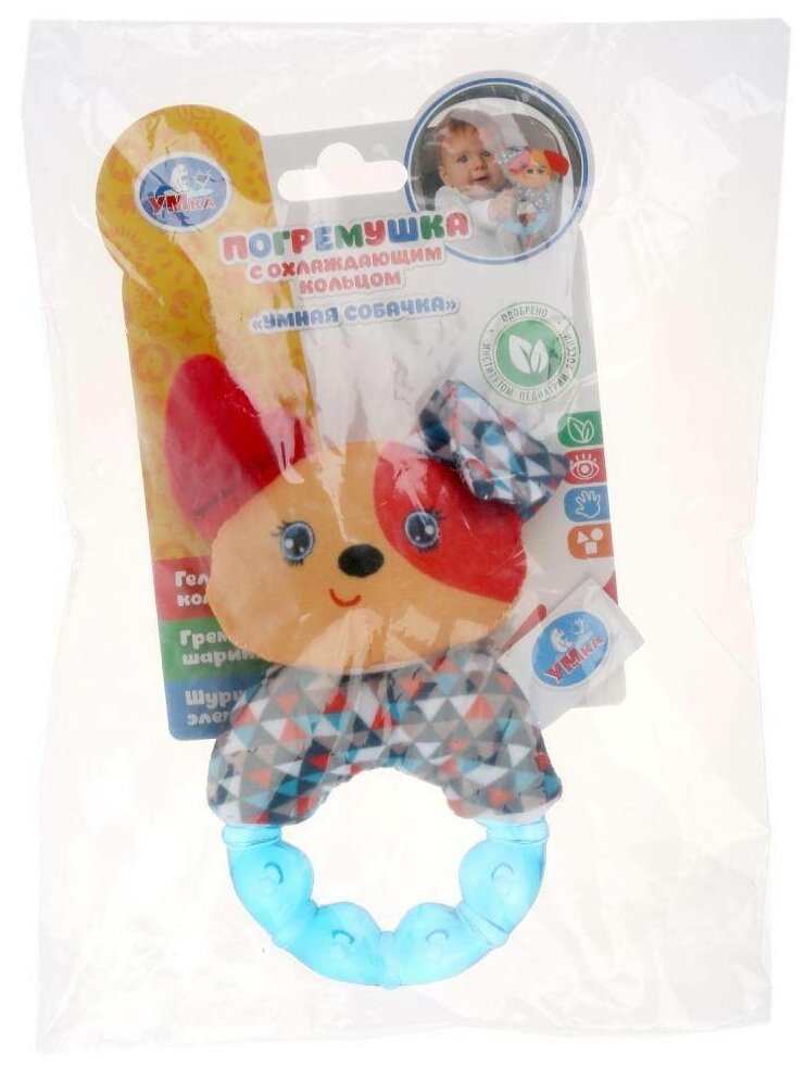 Погремушка Умка Текстильная с охлаждающим кольцом Умная собачка