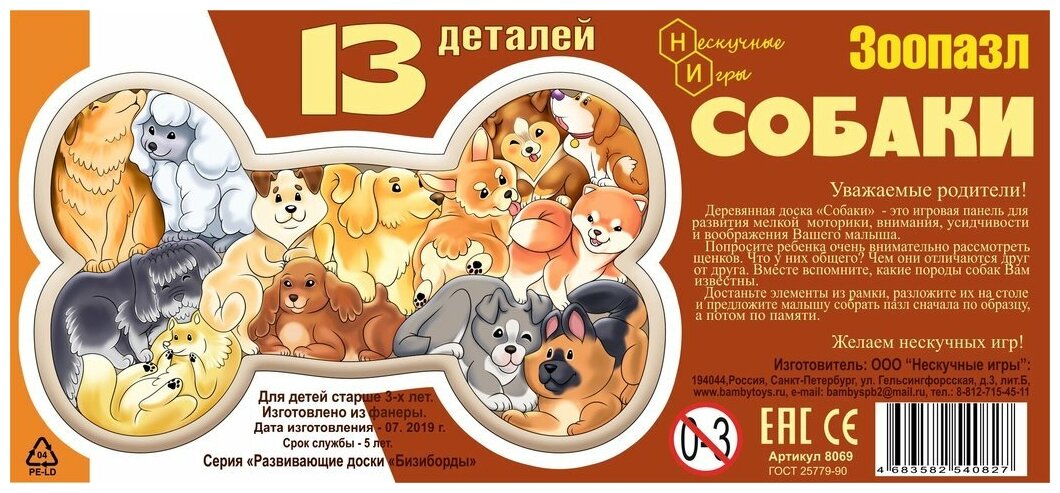 На сегодняшний день товар «Деревянная игрушка Нескучные Игры Зоопазл Собаки» можно купить с кешбеком в 1 магазине: Onliner BY