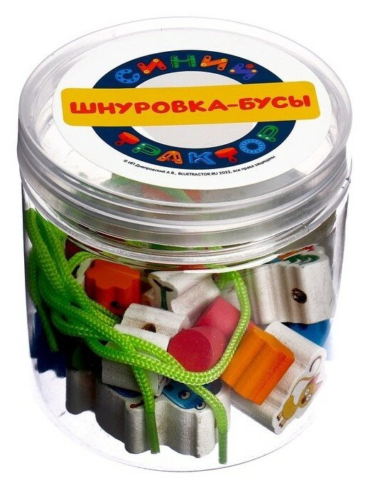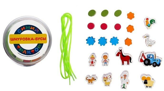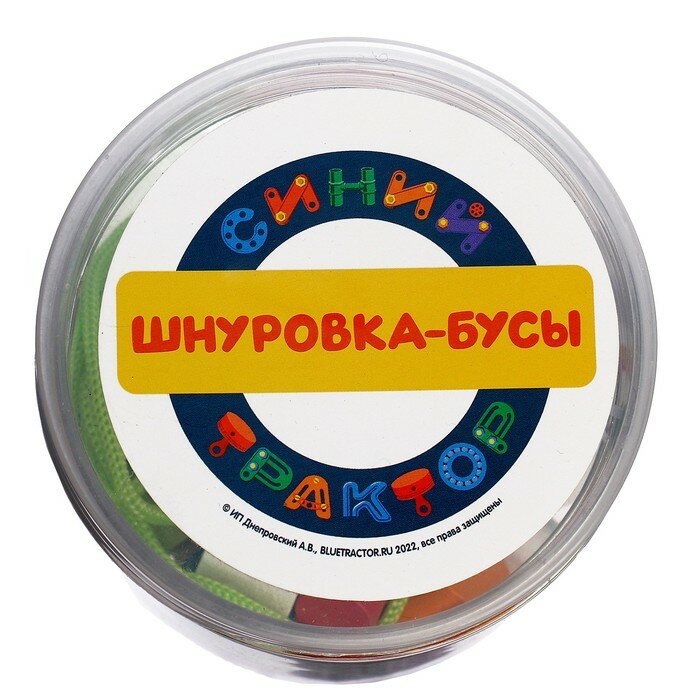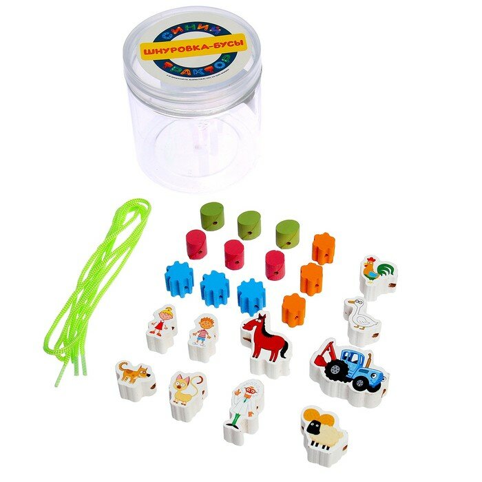 Деревянная игрушка в банке «Синий Трактор. Шнуровка-бусы» ТМ «Буратино» – увлекательная и полезная игра для малыша: